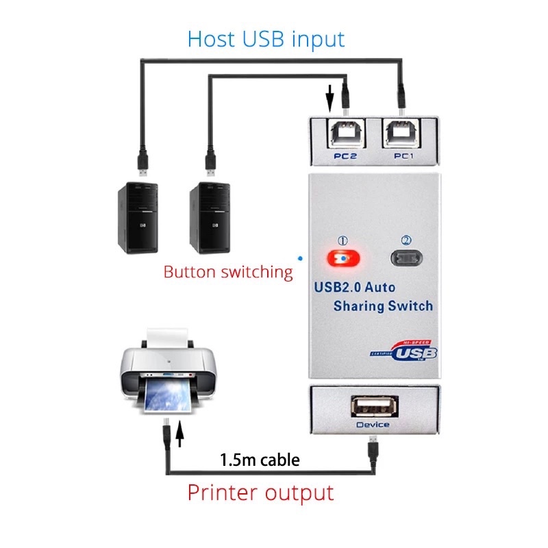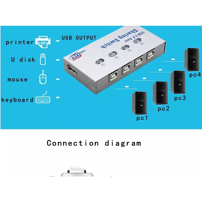 USB 2.0 Hub Auto Sharing Switch 2 Ports 4Port for Computer PC Printer(สินค้ามีพร้อมส่ง)