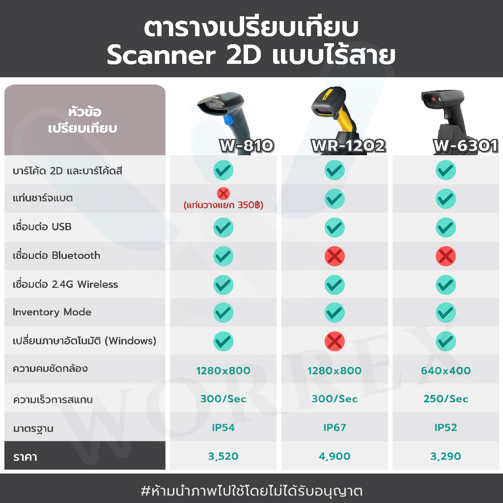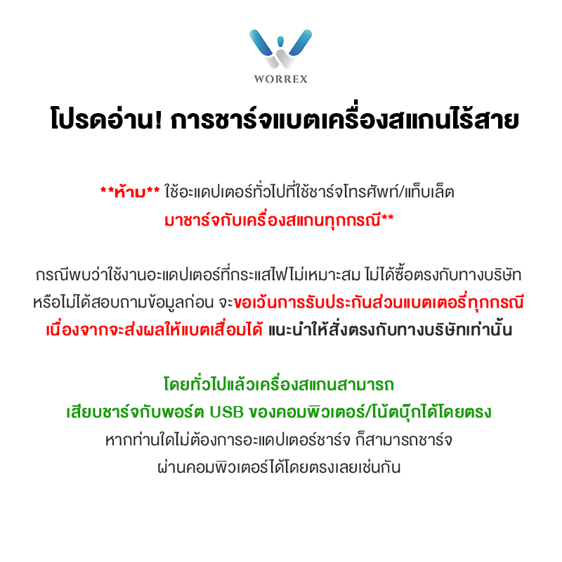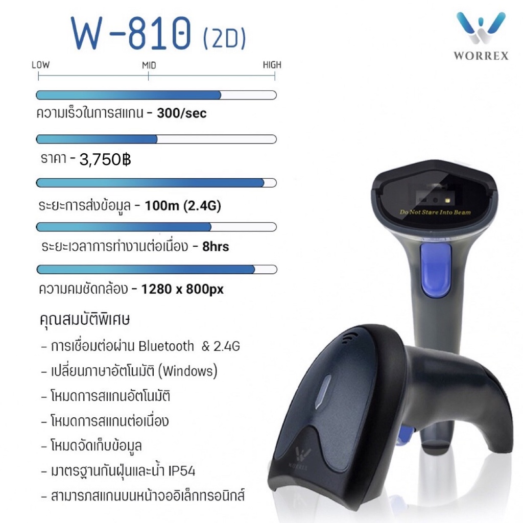 WORREX เครื่องอ่านบาร์โค้ด 2D แบบไร้สาย รุ่น W-810 รองรับการเชื่อมต่อบลูทูธ และ 2.4G รับประกัน 1 ปี