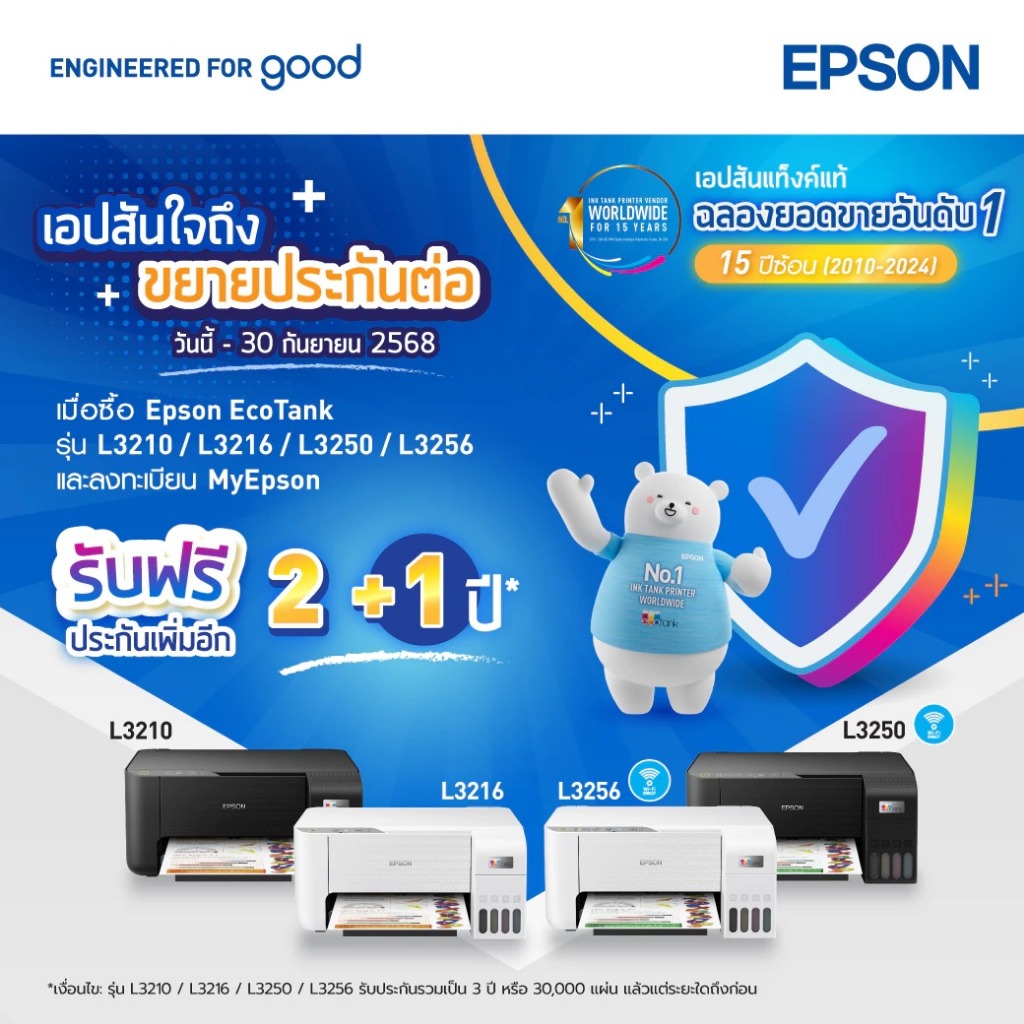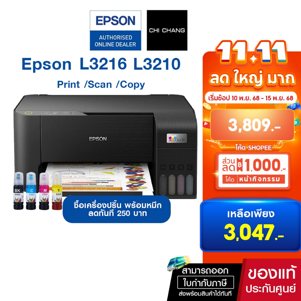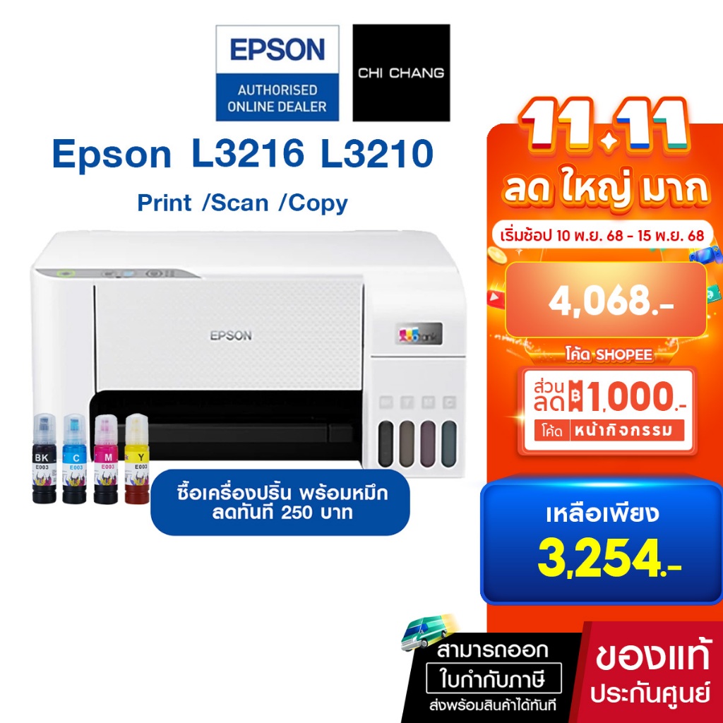 ปริ้นเตอร์อิงค์เจ็ท Epson L3216 / L3210 Print /Scan /Copy เพิ่มรับประกันเพิ่ม 4 ปี
