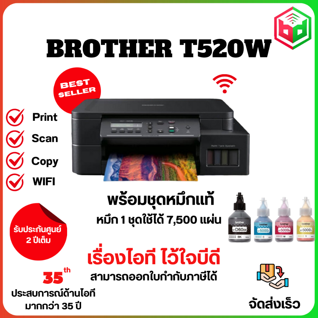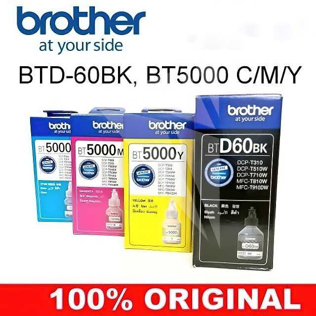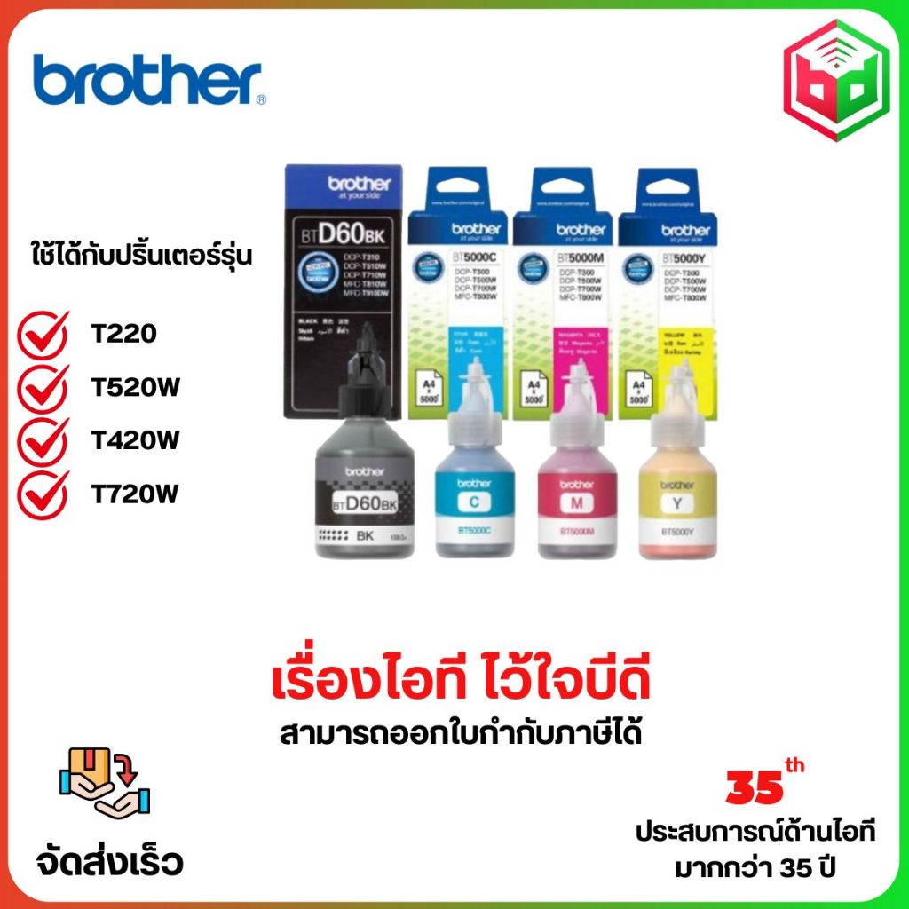Brother BT-D60 Bk/BT-5000 CMY หมึกขวดเติมบราเดอร์ของแท้ ใช้กับพริ้นเตอร์ (printer): Brother รุ่น DCP-T300 / T500W / T700