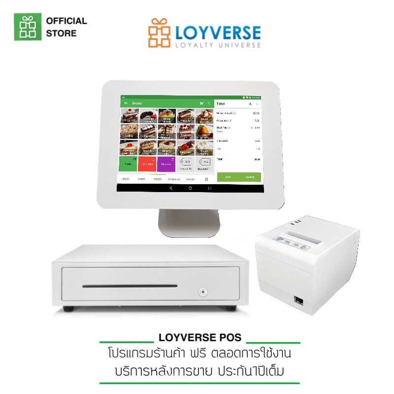 Loyverse pos 10.1 4G ร้านคาเฟ่ ร้านเสริมสวย สีขาว พร้อม NEWเครื่องพิมพ์ออโต้Bluetooth ขนาด80มม. ลิ้นชัก