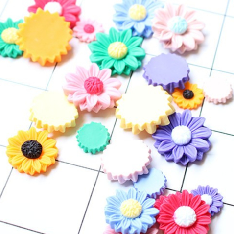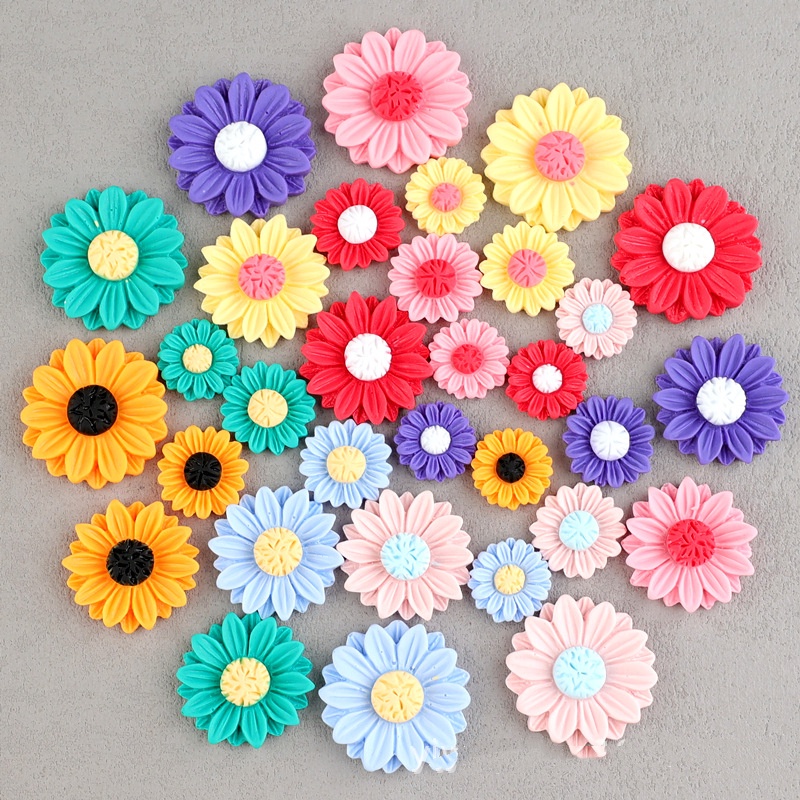 10 ชิ้น / เซต 16/18/25/30 มม. เดซี่ ดอกทานตะวัน เรซิ่น หลังแบน รองเท้า DIY วัสดุครีมเจล เคสโทรศัพท์ ทําอุปกรณ์เสริม