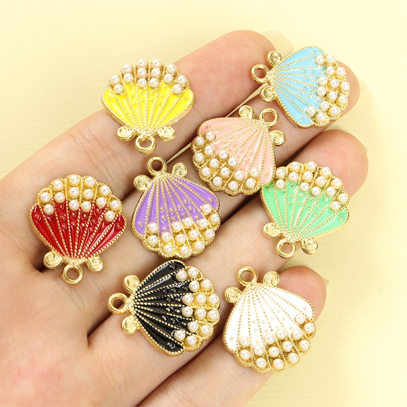 10 ชิ้น Ocean-Inspired เลียนแบบไข่มุกฝังเปลือกหอยที่มีสีสันออกแบบเคลือบ Charms DIY ฤดูร้อน Beach สไตล์ Vibrant สร้อยคอ, สร้อยข้อมือ, ต่างหูและกําไลข้อเท้า จี้ประณีต