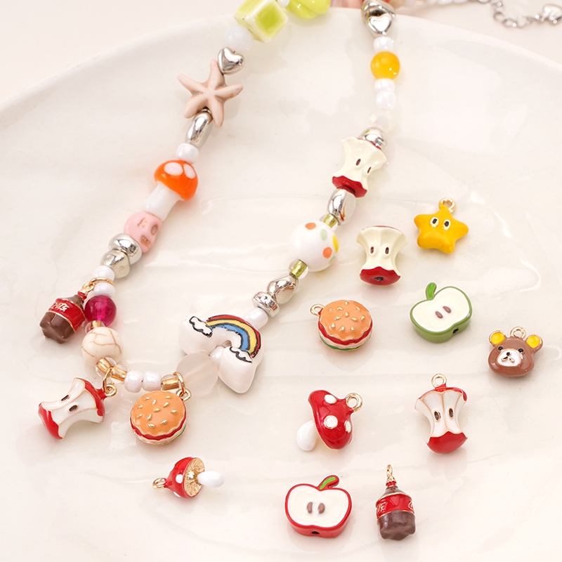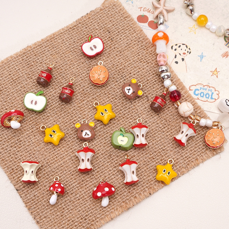 1 ชิ้นโลหะผสมวางน้ํามันเสน่ห์ลูกปัดน่ารักแอปเปิ้ลเห็ดลูกปัดจี้สําหรับ ทําเอง สร้อยข้อมือสร้อยคอเครื่องประดับทําอุปกรณ์
