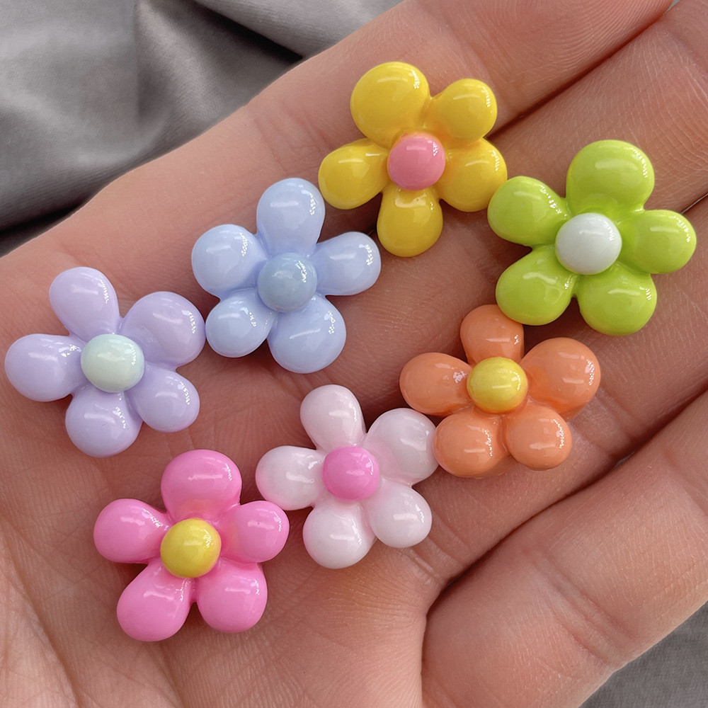 10 ชิ้น/เซ็ต Bright สีดอกไม้ Flatbacks เรซิ่น Cabochons Scrapbooking DIY เครื่องประดับหัตถกรรมอุปกรณ์ตกแต่ง