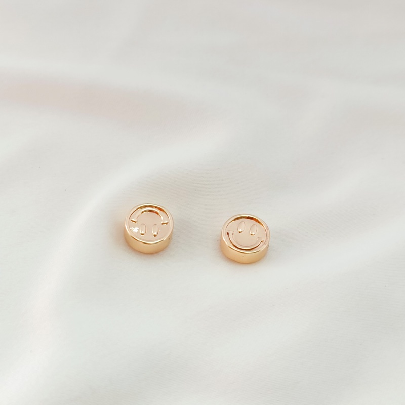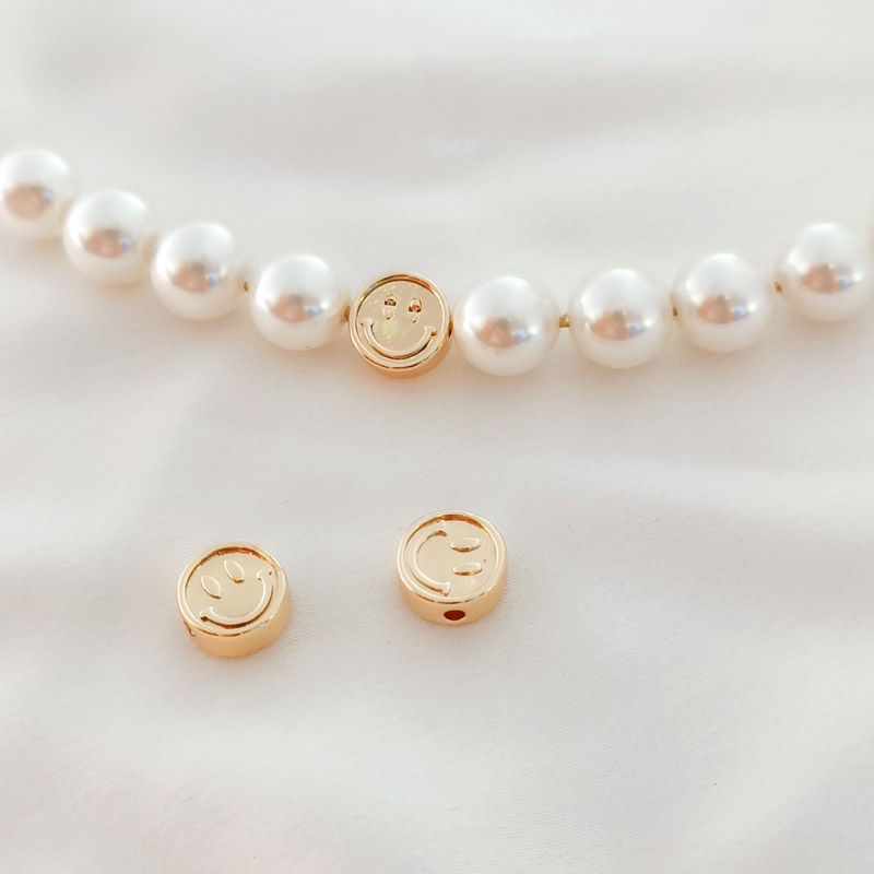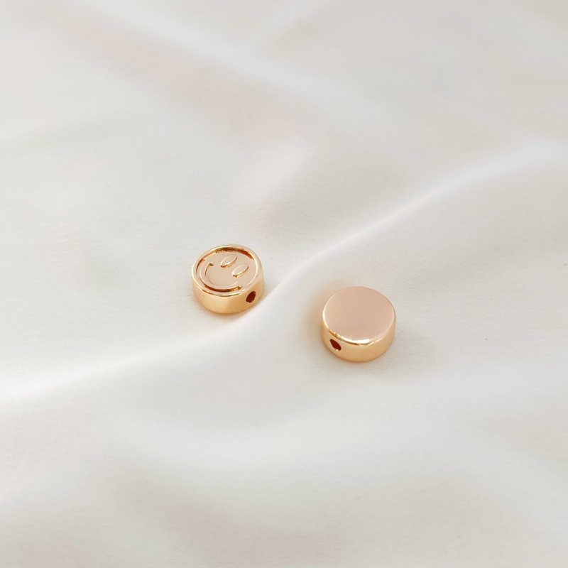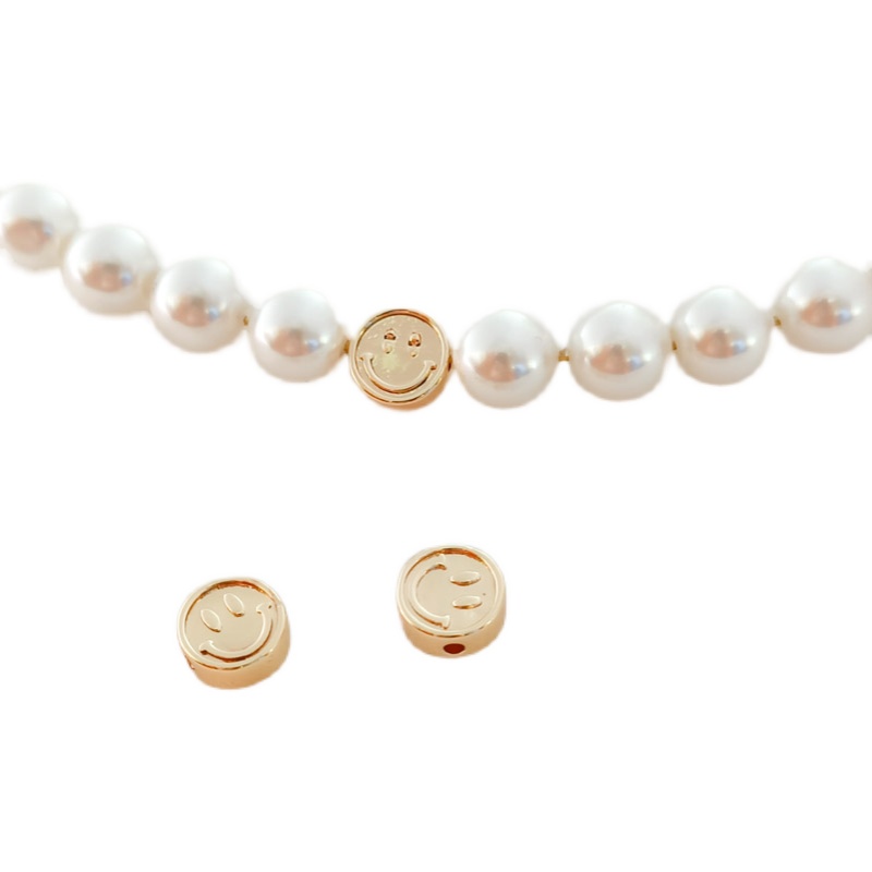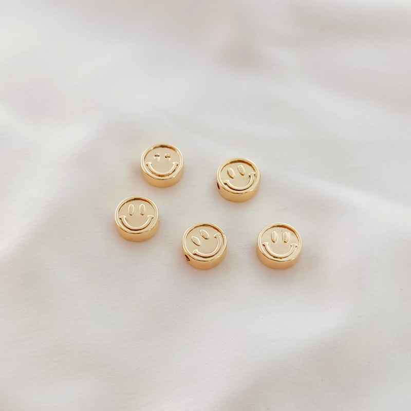 ลูกปัดทองแดง ชุบทอง 14K รูปหน้ายิ้ม แนวนอน สําหรับทําเครื่องประดับ สร้อยข้อมือ DIY