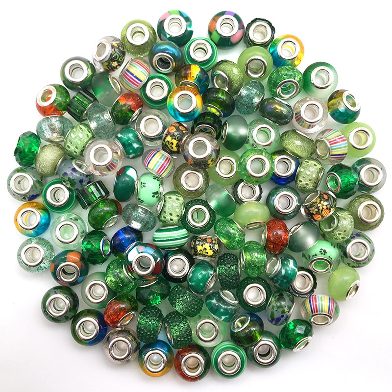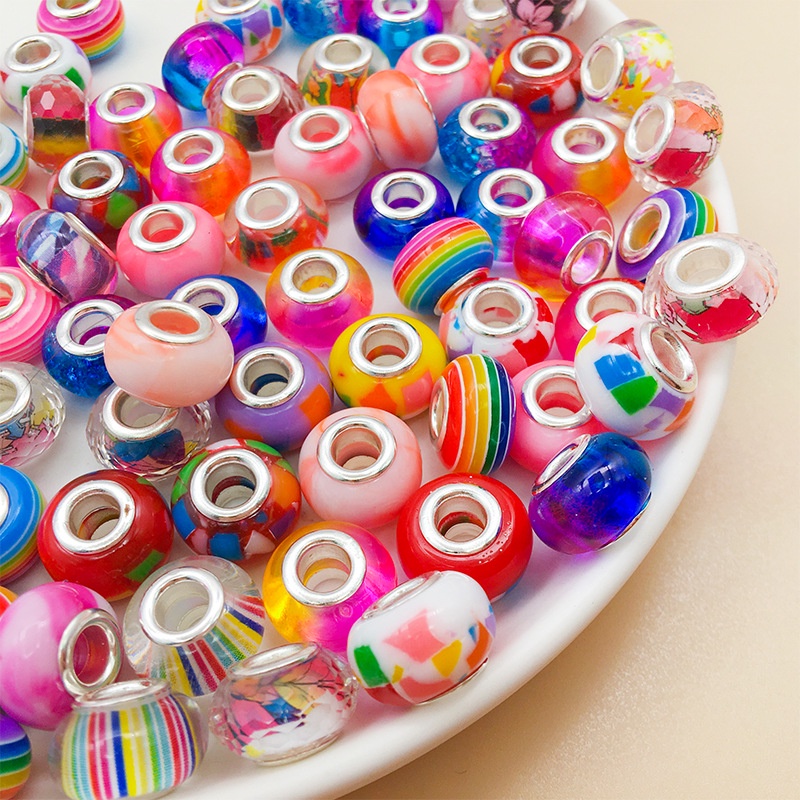 ลูกปัด รูขนาดใหญ่ สุ่มสี สําหรับทําเครื่องประดับ สร้อยข้อมือ สร้อยคอ DIY จํานวน 10 ชิ้น