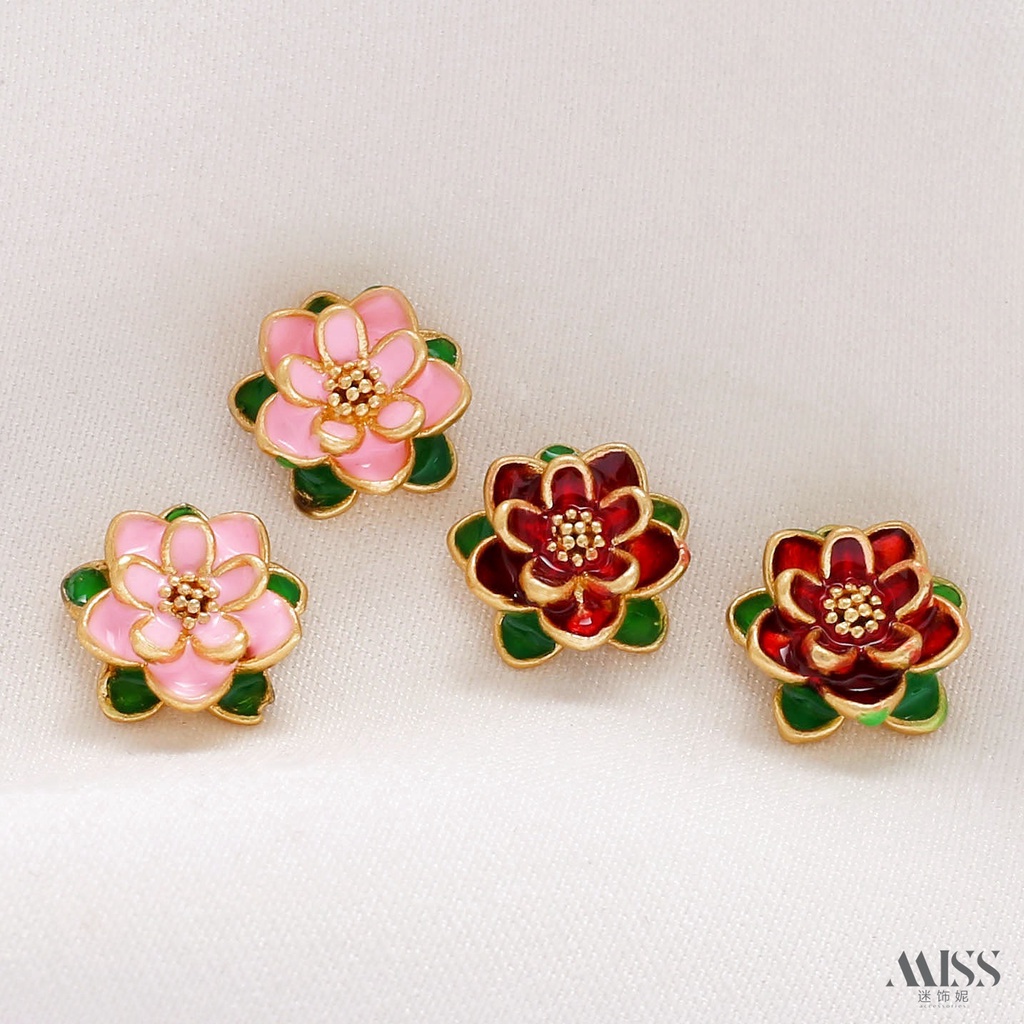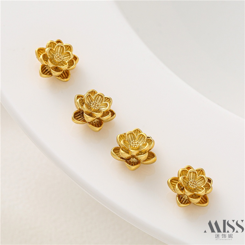 ลูกปัด Spacer 18K Matte Gold โลตัสสามมิติ Through Hole