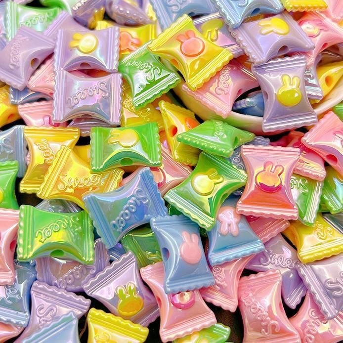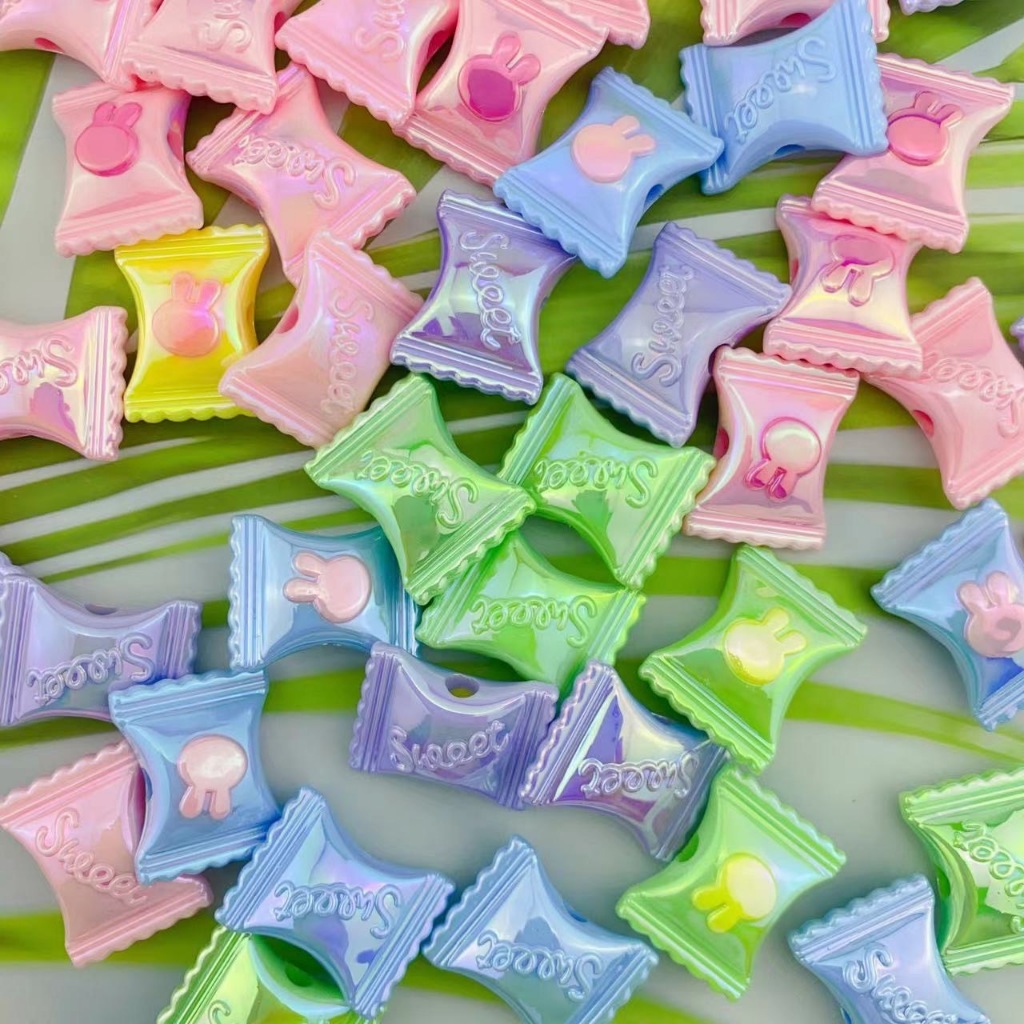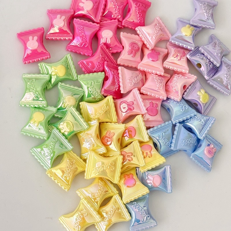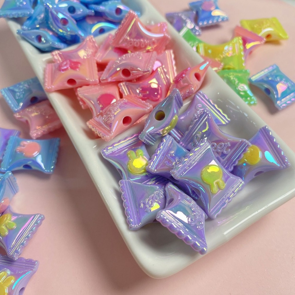 ลูกปัด ก้อนเมฆ สีเยลลี่ เคลือบโฮโลแกรม ขนาด 18*25mm รูตรงกลาง3mm อุปกรณ์งานฝีมือ ของตกแต่ง DIY