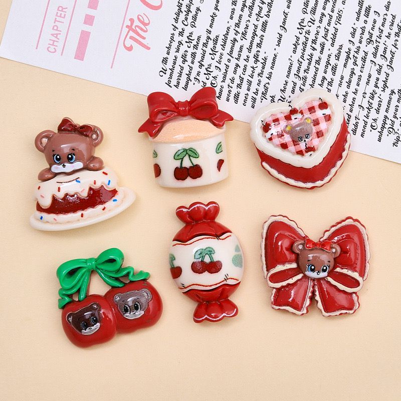โบว์ติดผม ลายการ์ตูนเชอร์รี่ ลูกกวาด โบว์ สําหรับตกแต่งสมุดภาพ เค้ก 10 ชิ้น DIY
