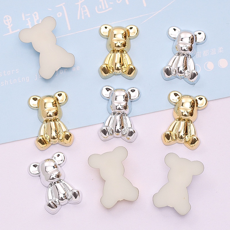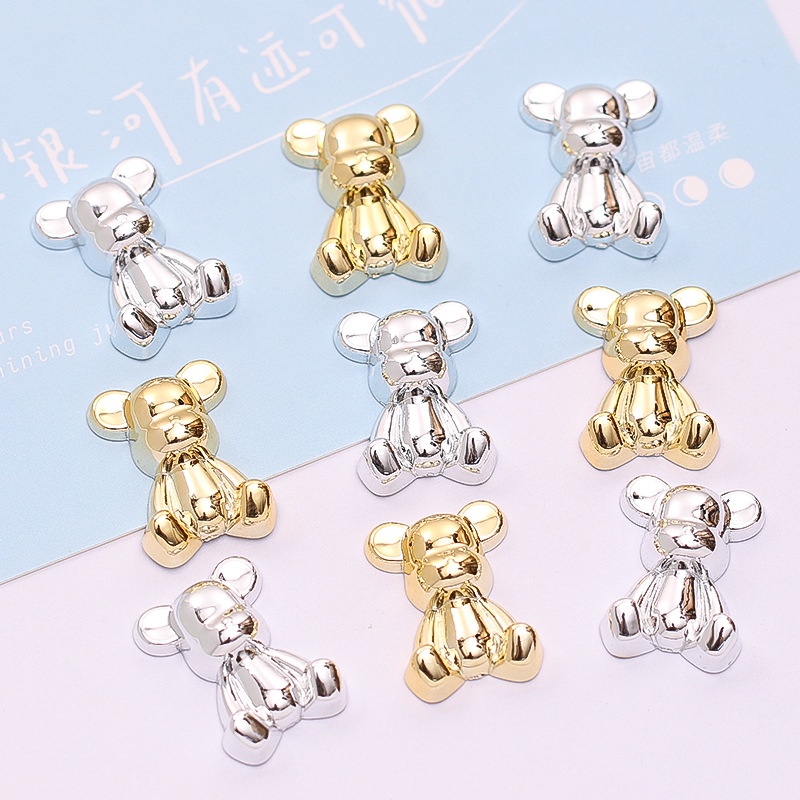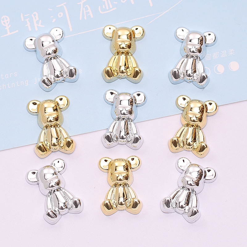 แผ่นโลหะเรซิ่น รูปหมีโหด ชุบไฟฟ้า สีทอง สีเงิน สําหรับตกแต่งกิ๊บติดผม โทรศัพท์ diy
