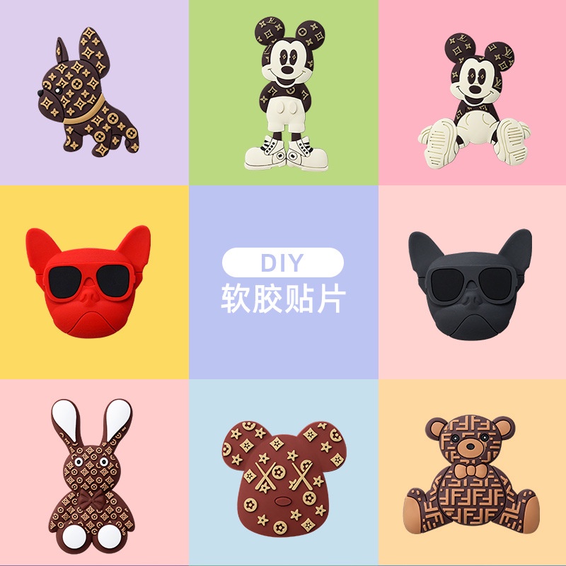 แผ่นยาง PVC นิ่ม ลายดอกไม้ สุนัข กระต่าย แนวสตรีท แฮนด์เมด diy อุปกรณ์เสริม สําหรับตกแต่งโทรศัพท์มือถือ diy