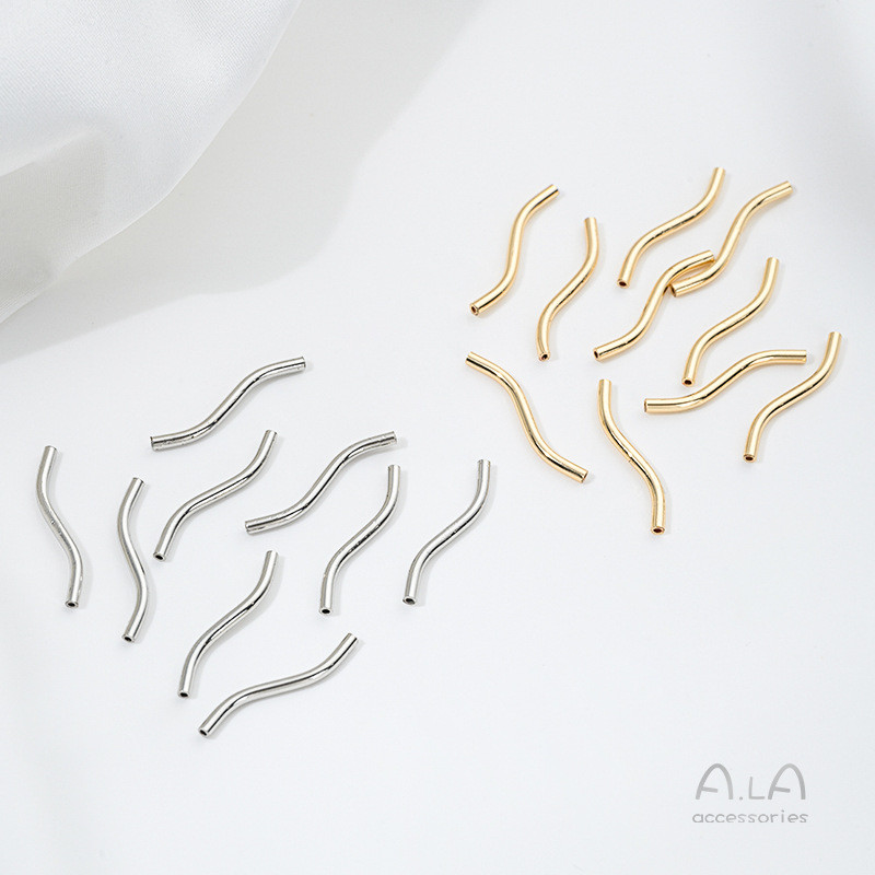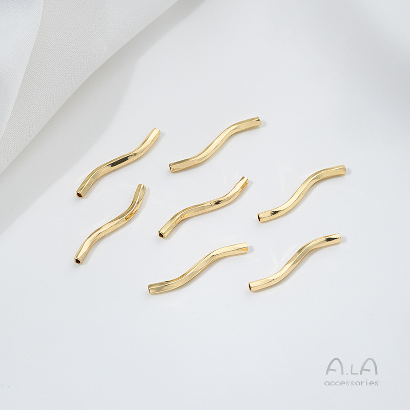 💖ALA เครื่องประดับ DIY💖ท่อโค้งรูปตัว S ชุบทอง 14K รักษาสีได้ ท่อกลวง DIY สร้อยข้อมือ สร้อยคอ ต่างหู อุปกรณ์เครื่องประดับ วัสดุทำมือ [สร้อยคอ สร้อยข้อมือ กําไลข้อมือ]