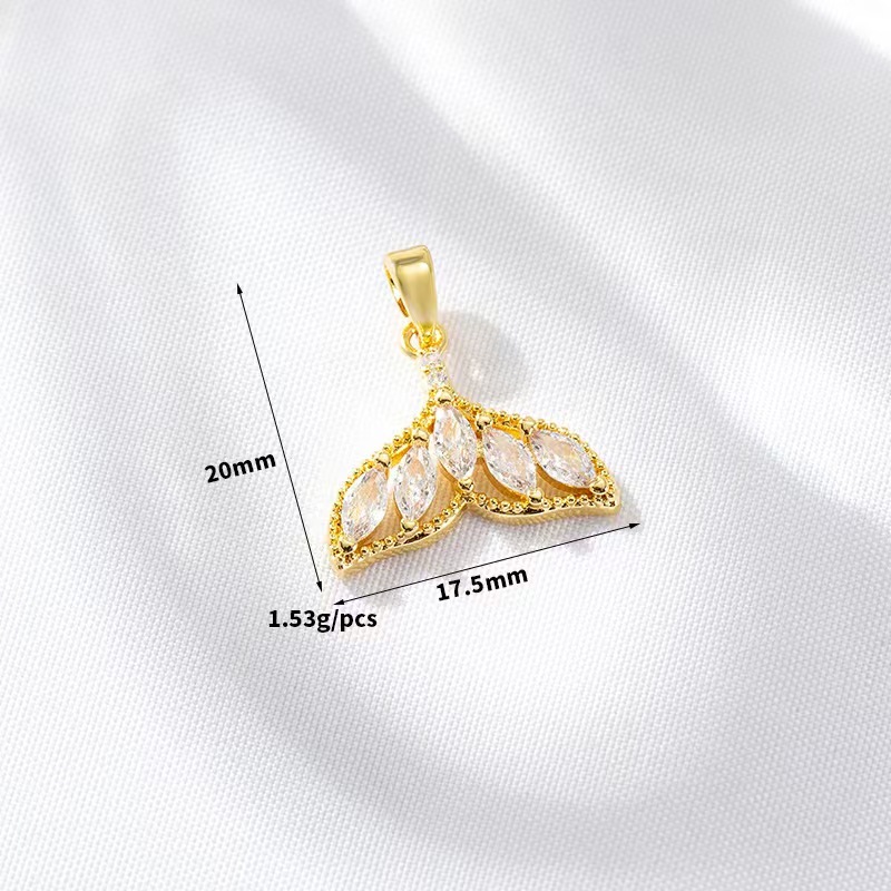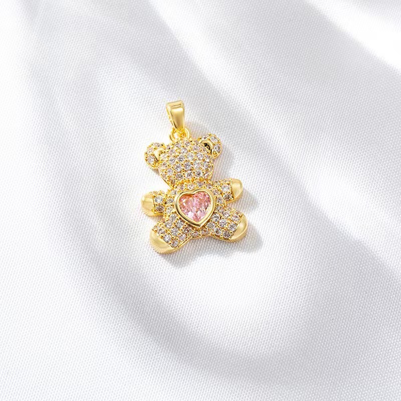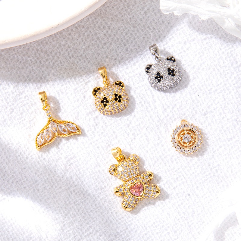 14k Gold Zircon Bear Tail จี้สร้อยคอต่างหู DIY อุปกรณ์เสริมขายส่ง