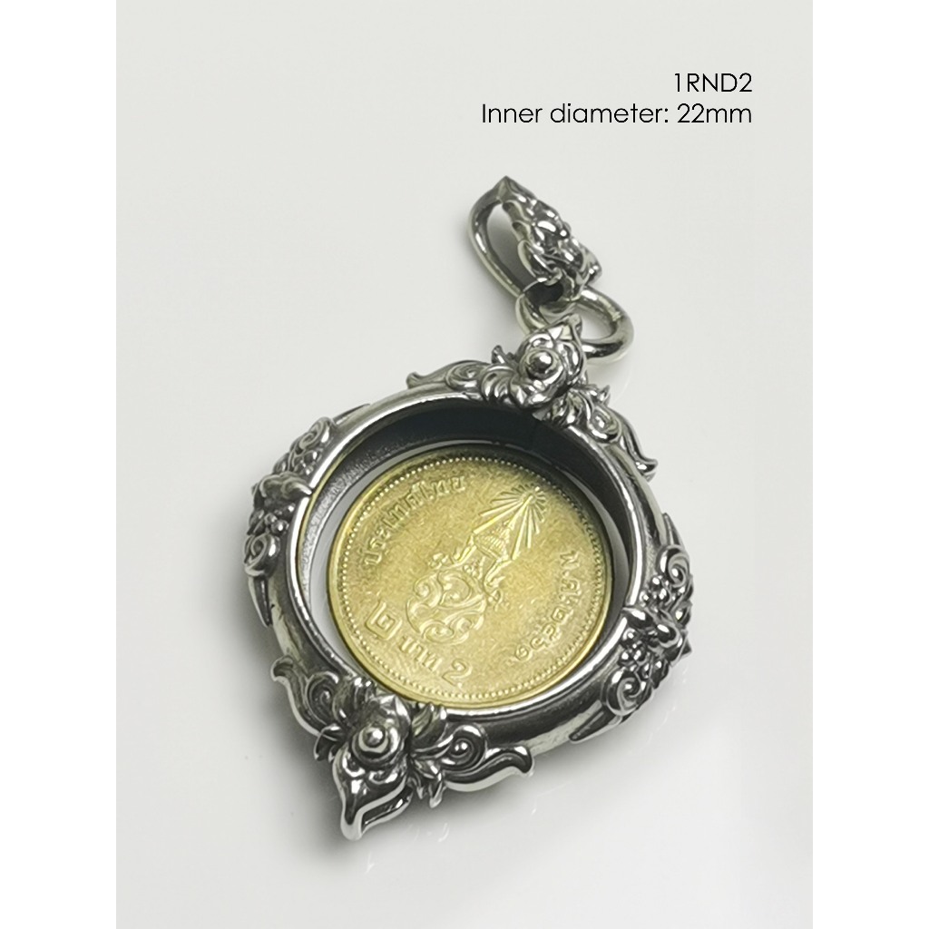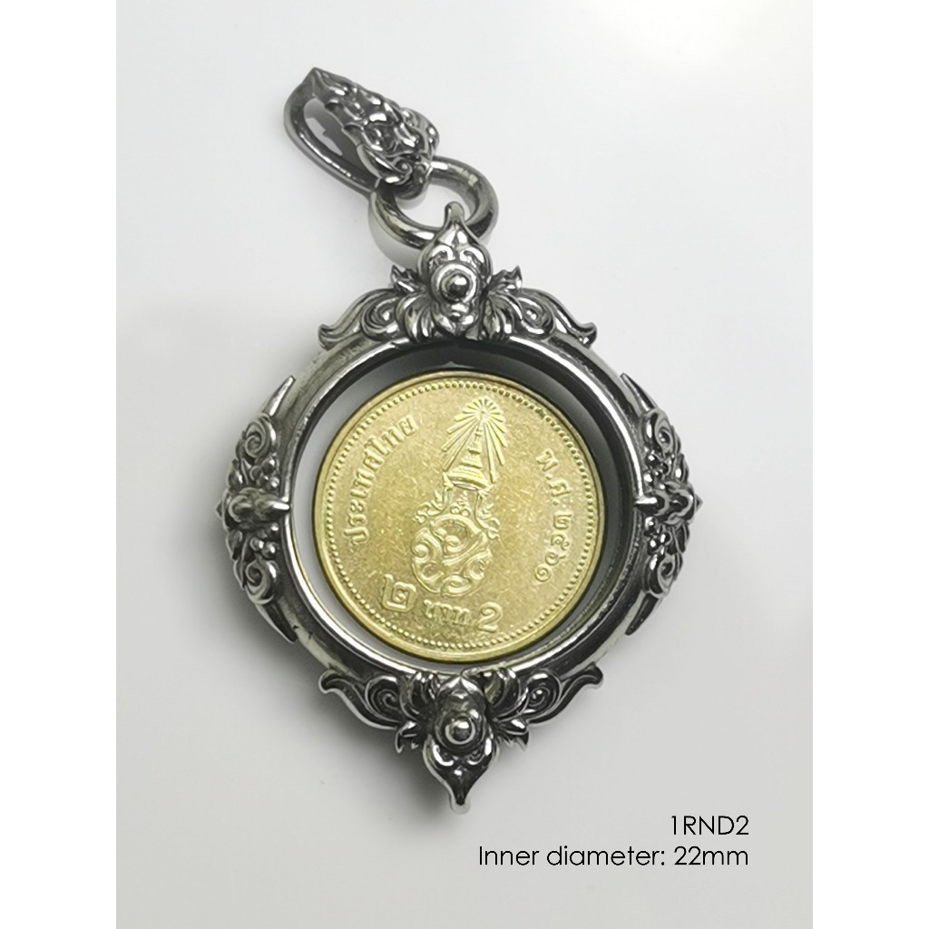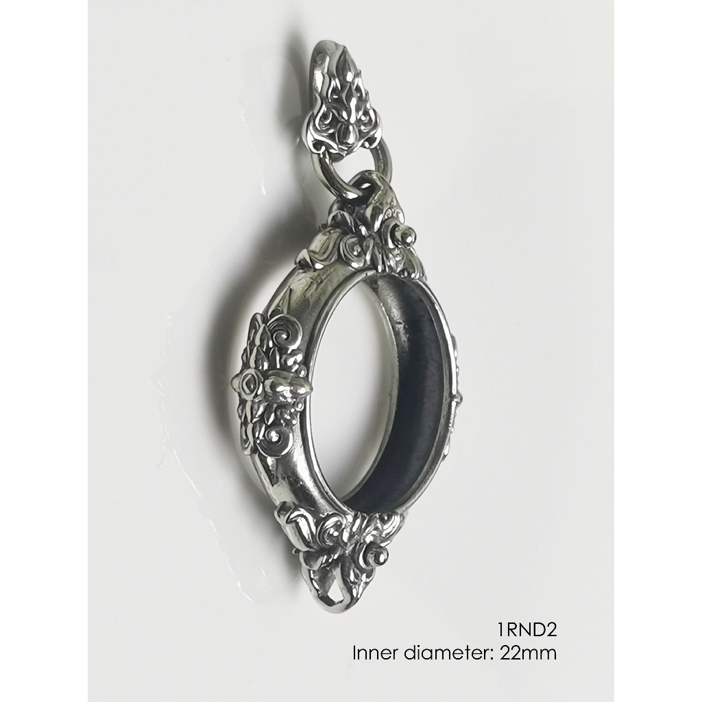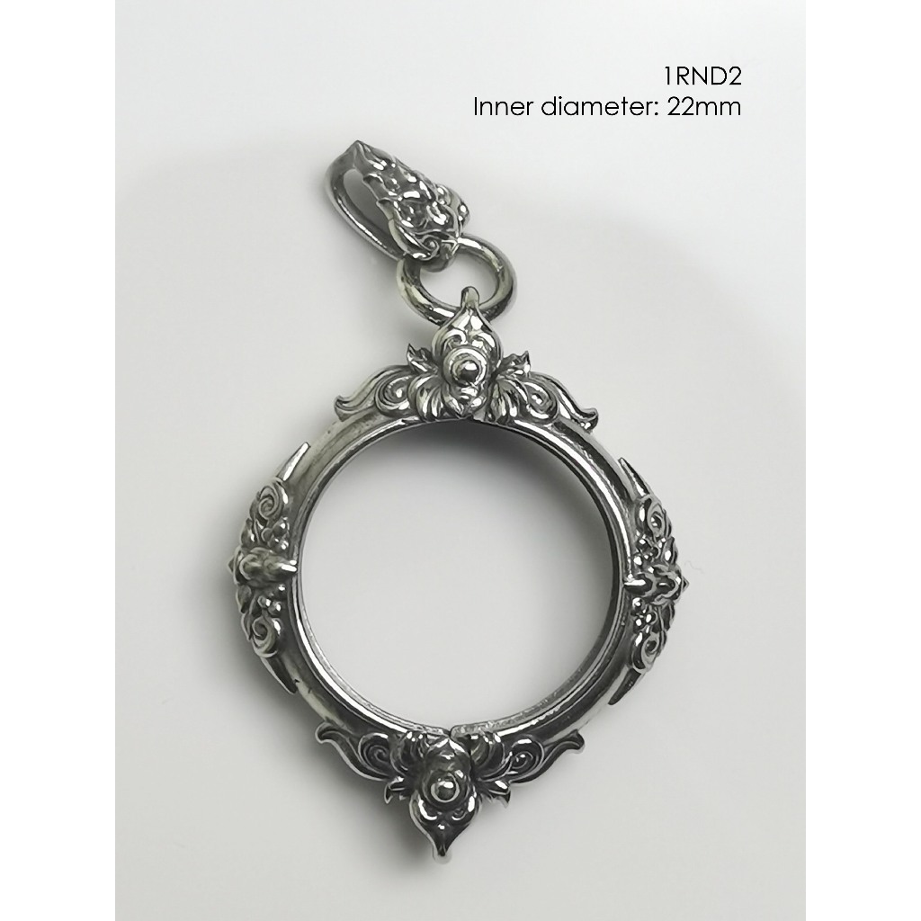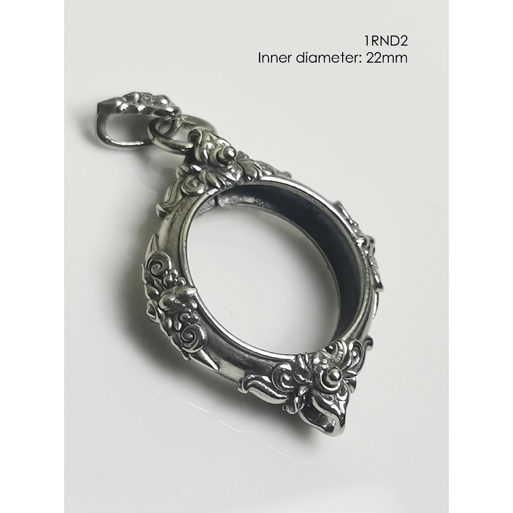 1RND2Whitebrass round amulet casing inner diameter 22mm กรอบพระ ไวท์บราส ทรงกลม