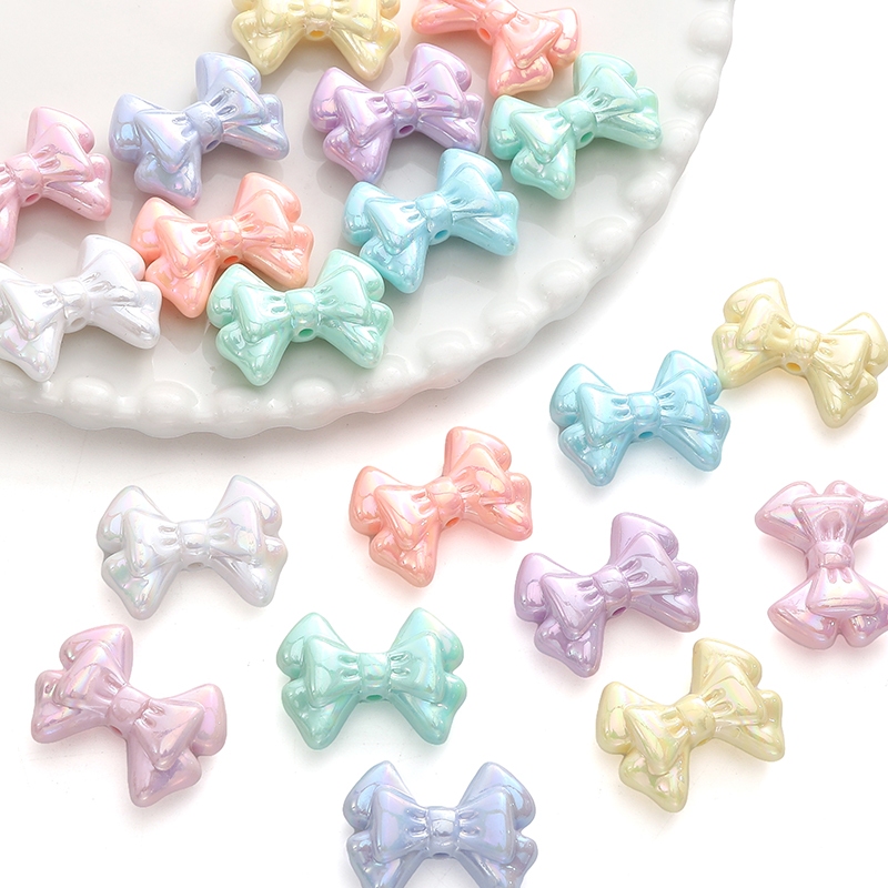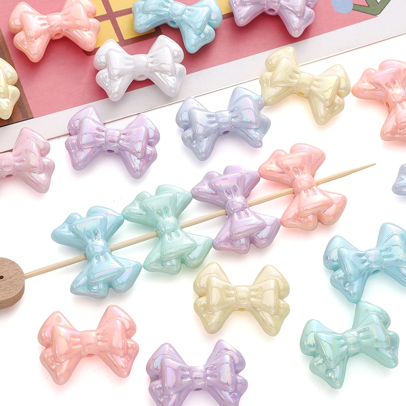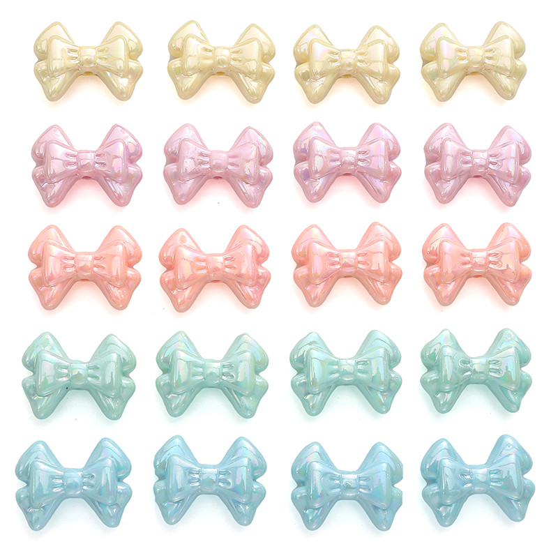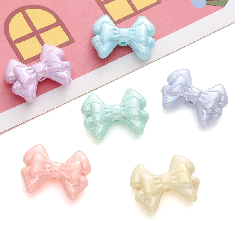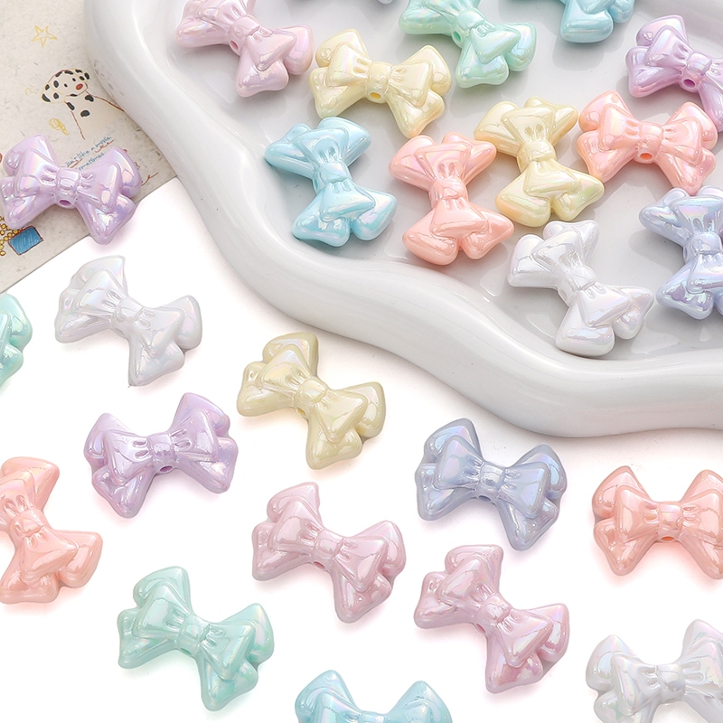 31×21 มม.โบว์คู่ AB สีสันโบว์ลูกปัดอะคริลิค DIY Handmade