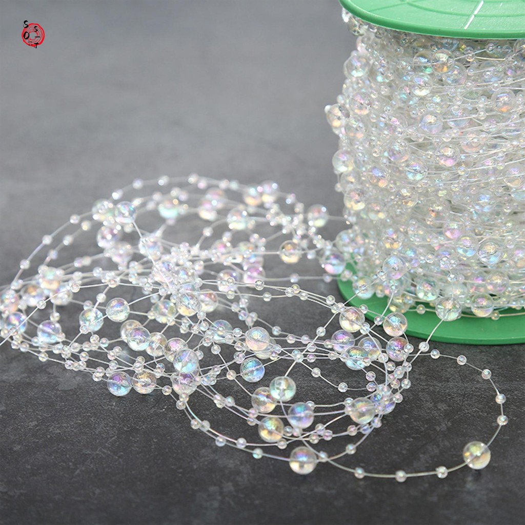 30 เมตรสร้อยคอพลาสติกที่มีสีสันโซ่หัตถกรรมสตริงประกายมุกเทียม Strand
