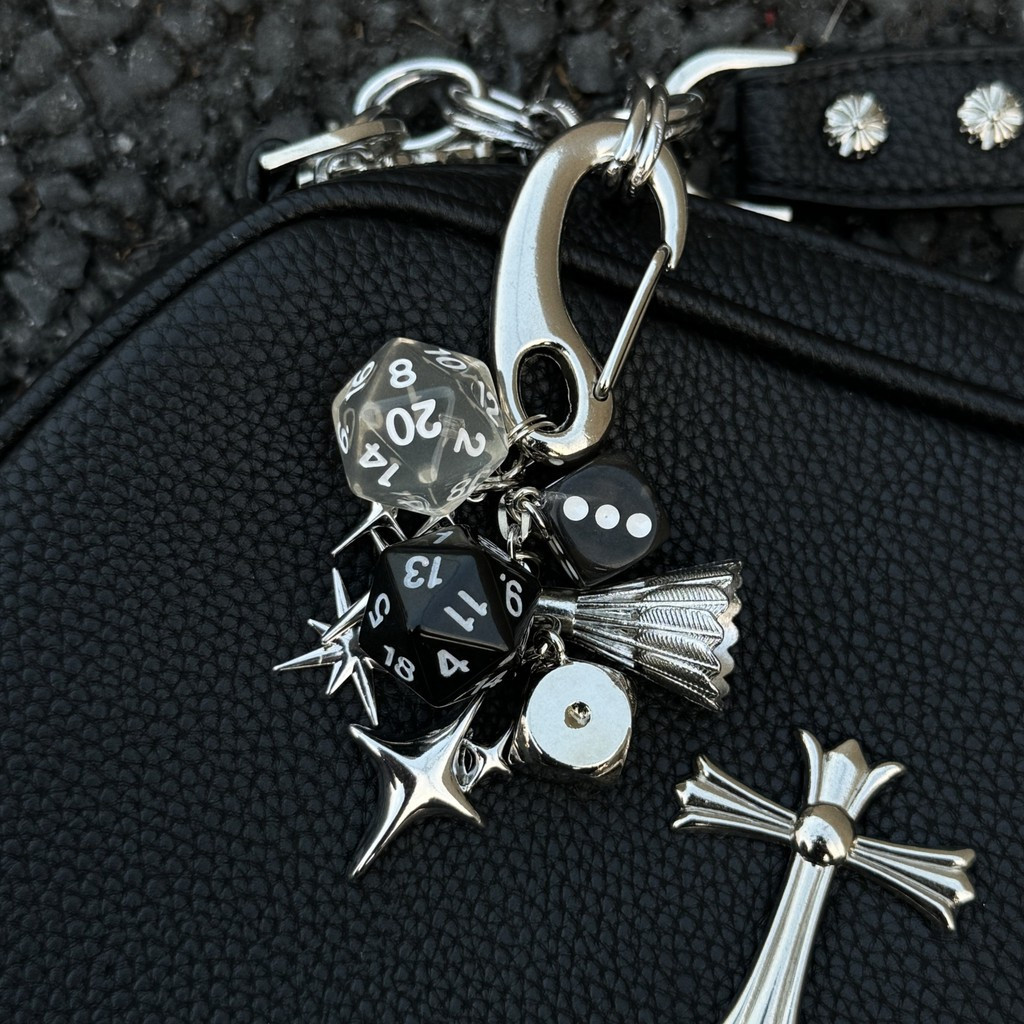 2025 ใหม่สไตล์บล็อกเกอร์สไตล์โลหะแบดมินตันสไตล์ลูกเต๋า สูง-จบ กระเป๋าจี้เดิม ทําด้วยมือ พวงกุญแจเอวจี้แฟชั่นโชคดีกระเป๋าจี้แฟชั่น สําคัญ โซ่