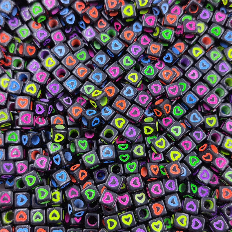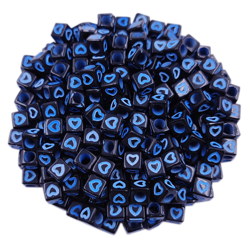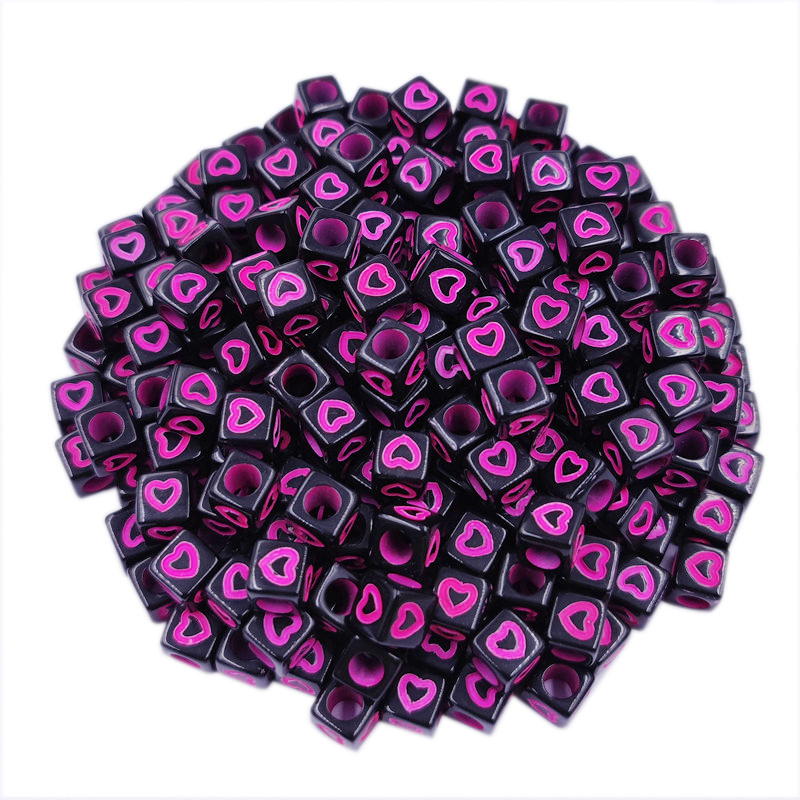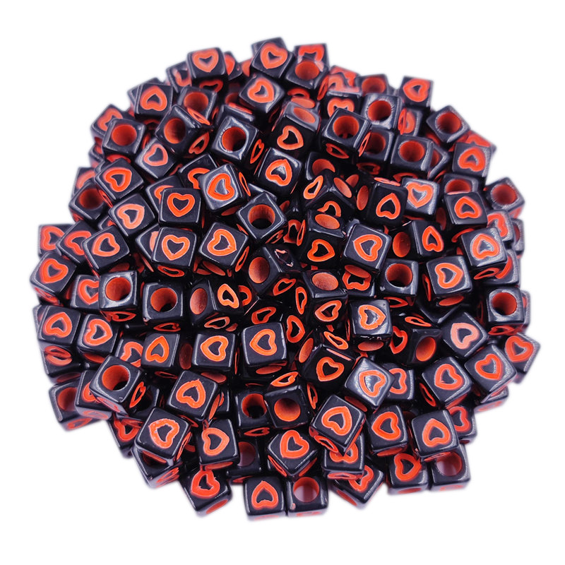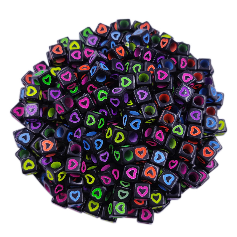 40ชิ้นแฟชั่นสีดําด้านล่างกลวงหัวใจสแควร์หลวมลูกปัด7มิลลิเมตรเครื่องประดับ ทําเอง อุปกรณ์ขายส่ง