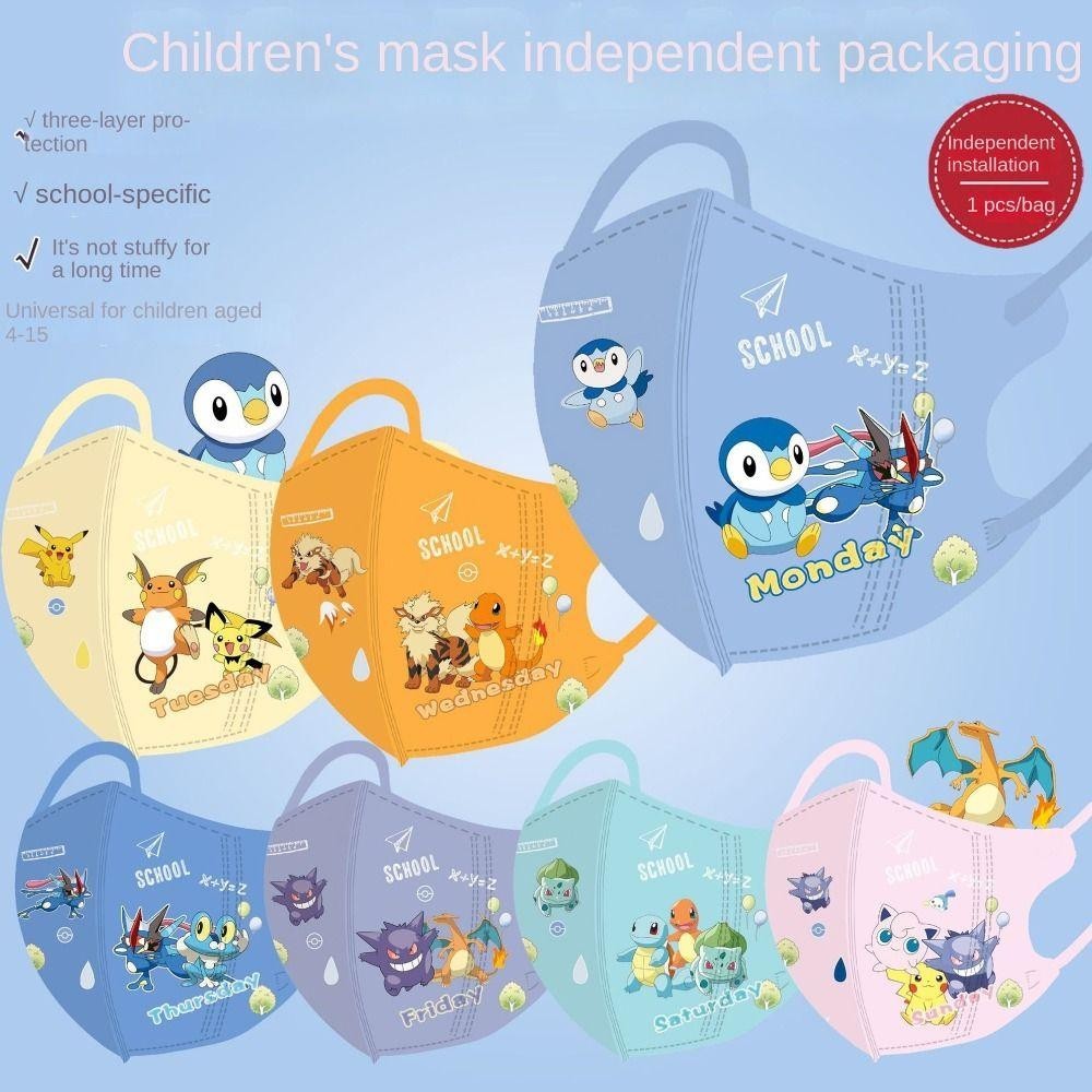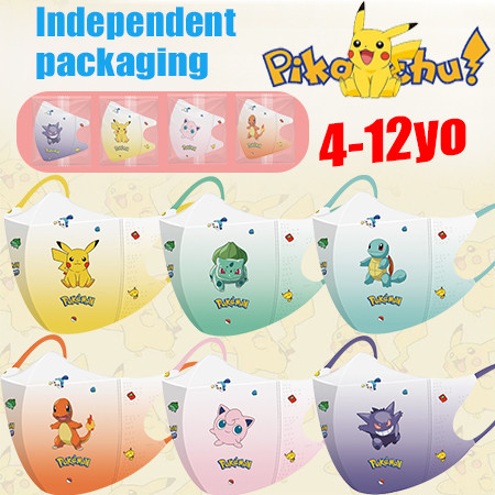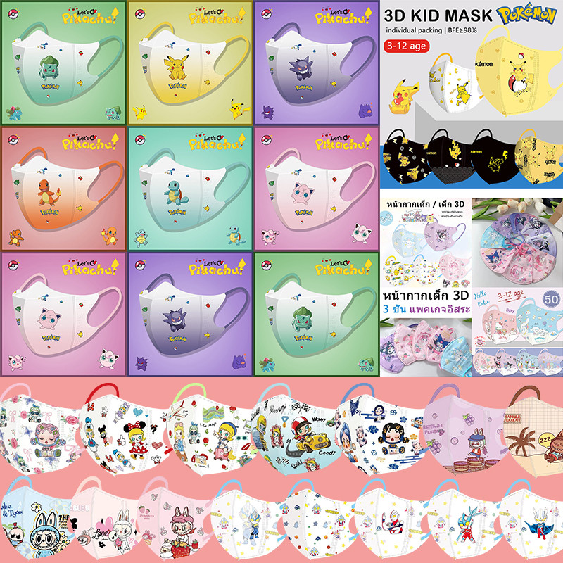 Kid Mask4D มาสก์การ์ตูนเด็ก 4-12yo บรรจุแยกกันในรูปแบบต่างๆ: รูปแบบการ์ตูนของ Capibala, Kuromi และ Pikachu Spider-Man Mix และ Match หน้ากากเด็ก