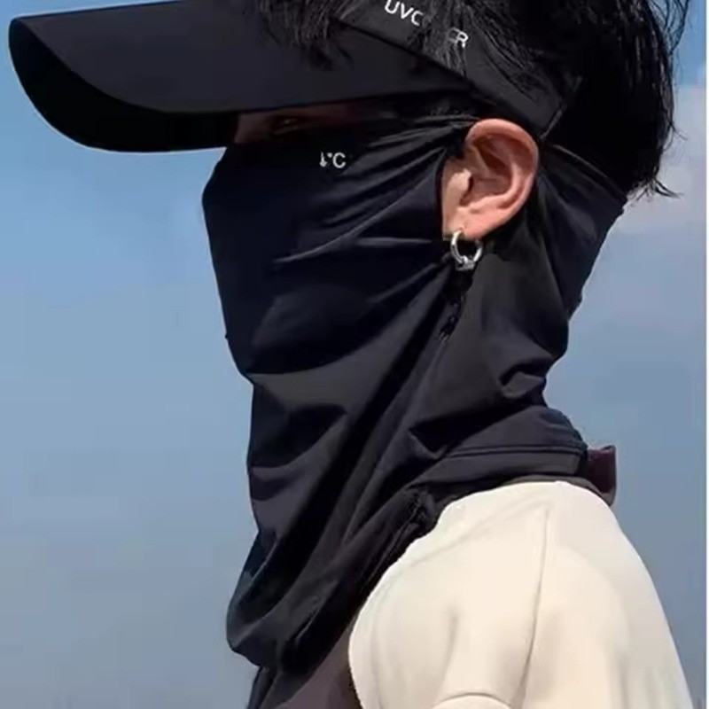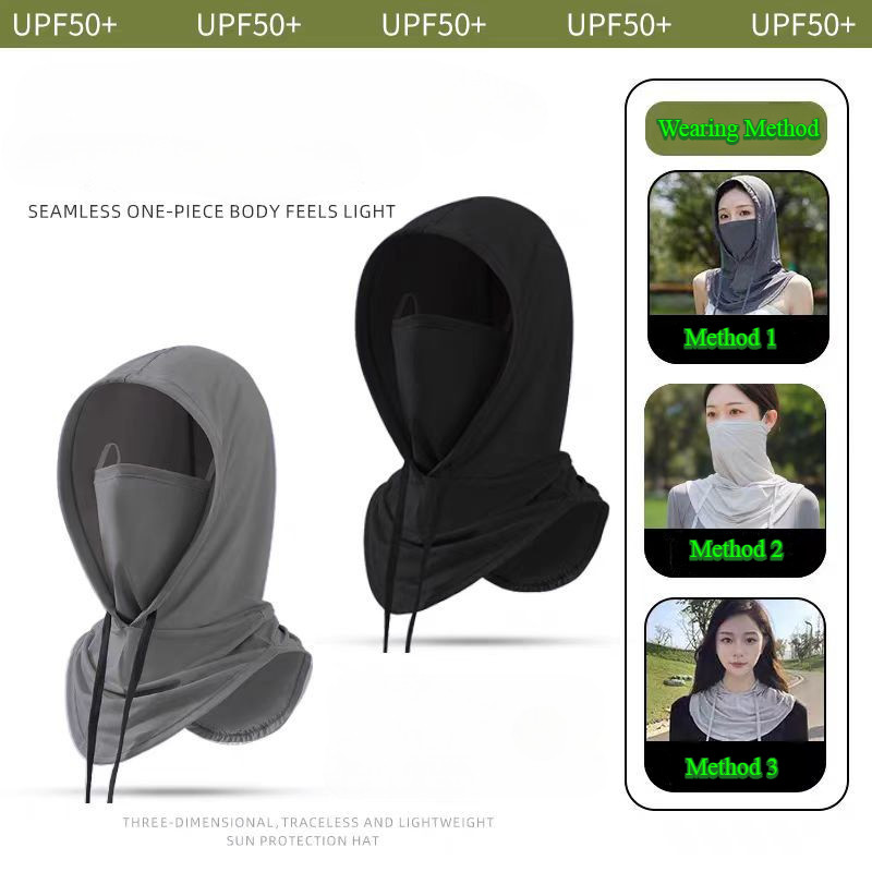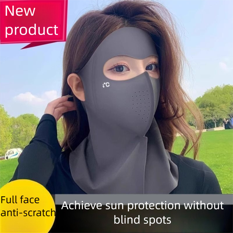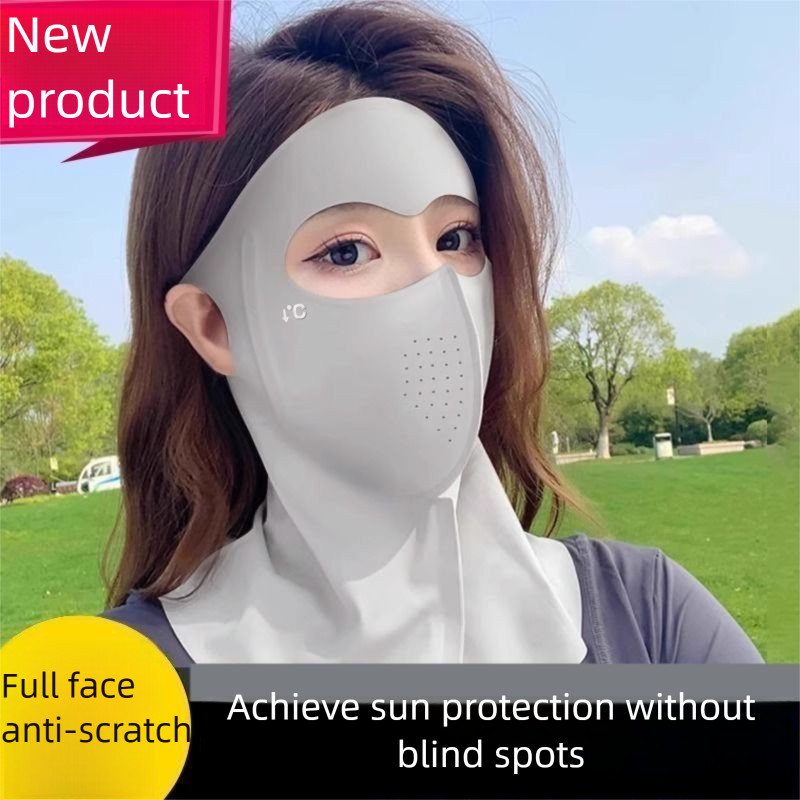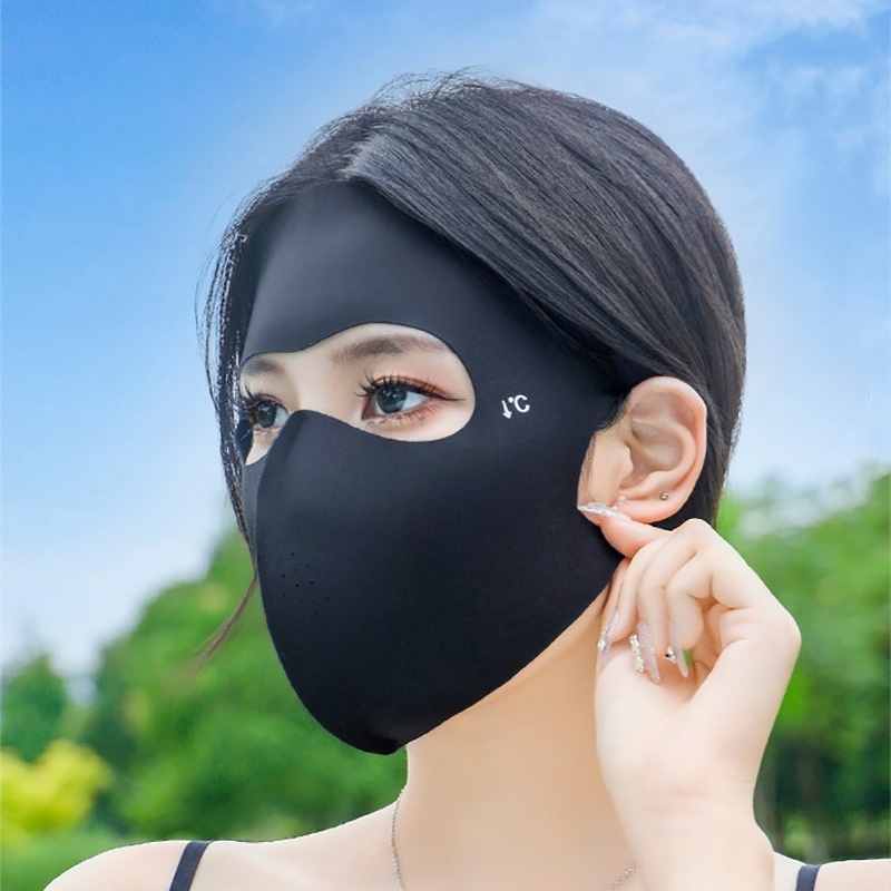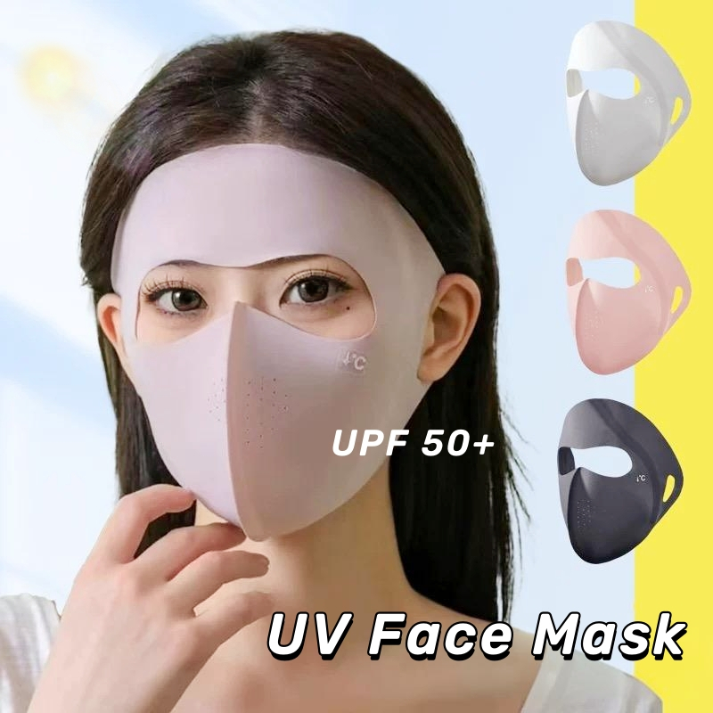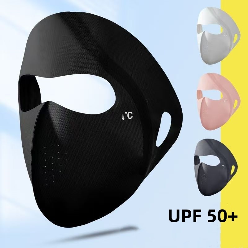 หน้ากากป้องกันรังสียูวีเต็มใบหน้า – ผ้าไหมน้ำแข็งระบายอากาศ สามารถซักทำความสะอาดได้ เหมาะสำหรับการขี่จักรยานและเล่นกีฬากลางแจ้ง SPF 50+