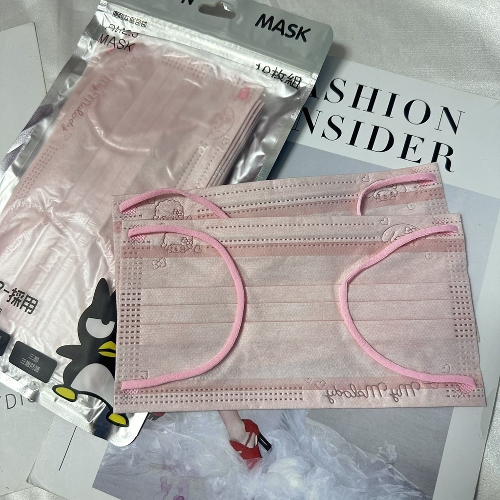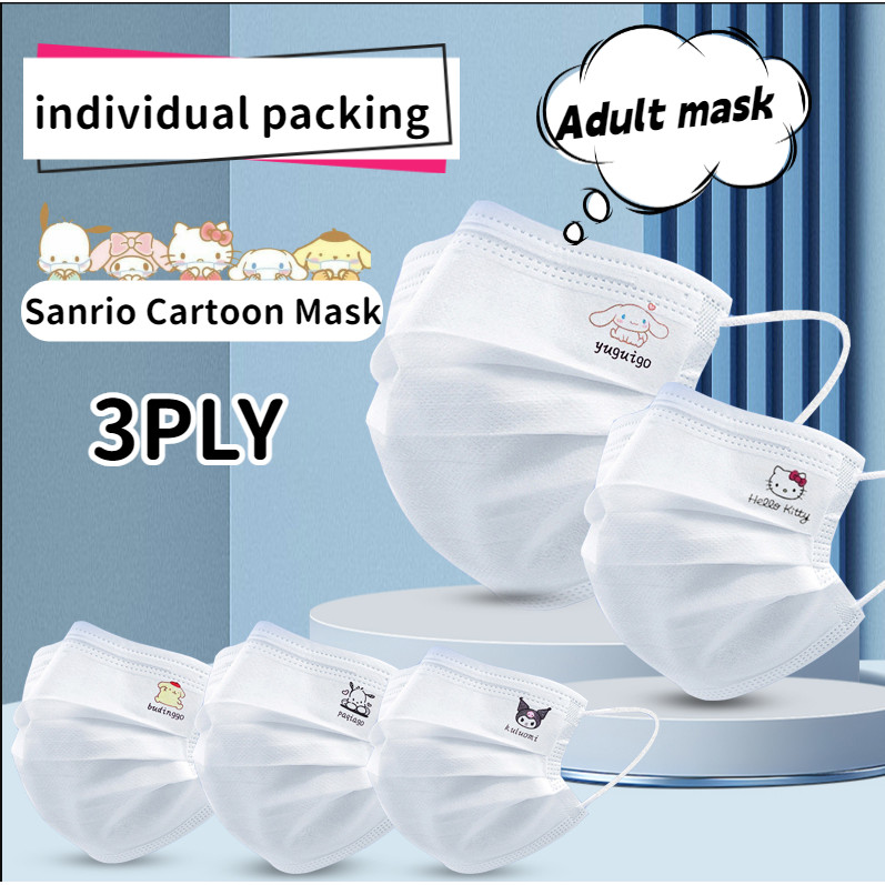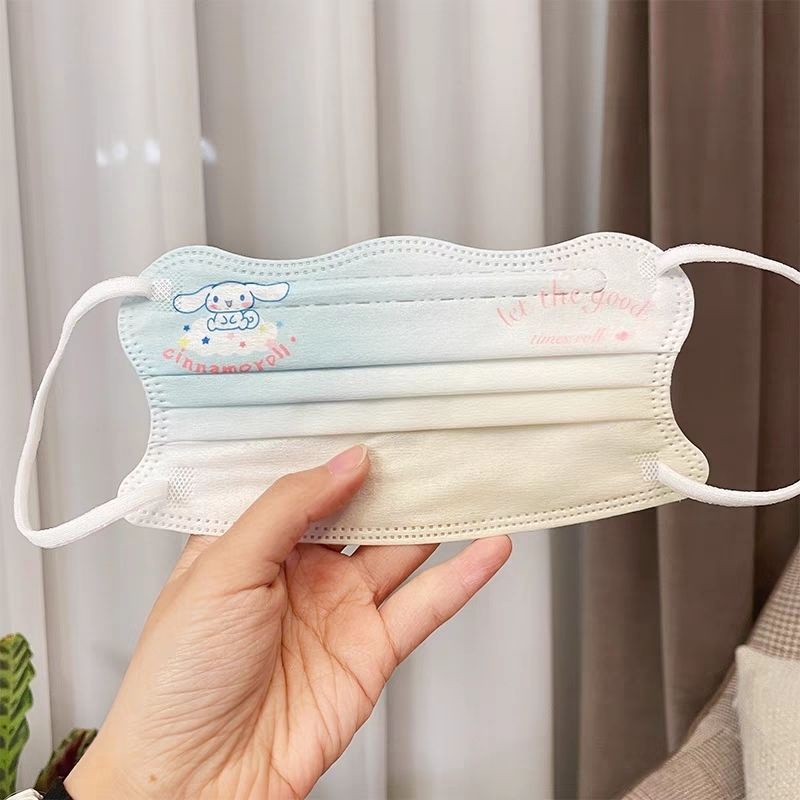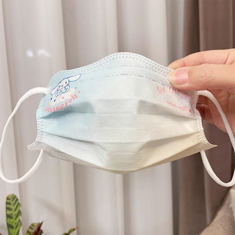 หน้ากากสําหรับผู้ใหญ่สําหรับฤดูร้อนกันแดด,ลายการ์ตูน ชาม ซานริโอ สีขาว10ชิ้น/50ชิ้น,เรียบง่ายและทันสมัยสําหรับผู้หญิงและนั