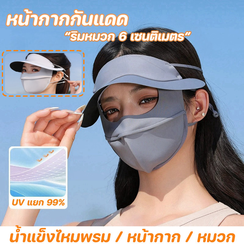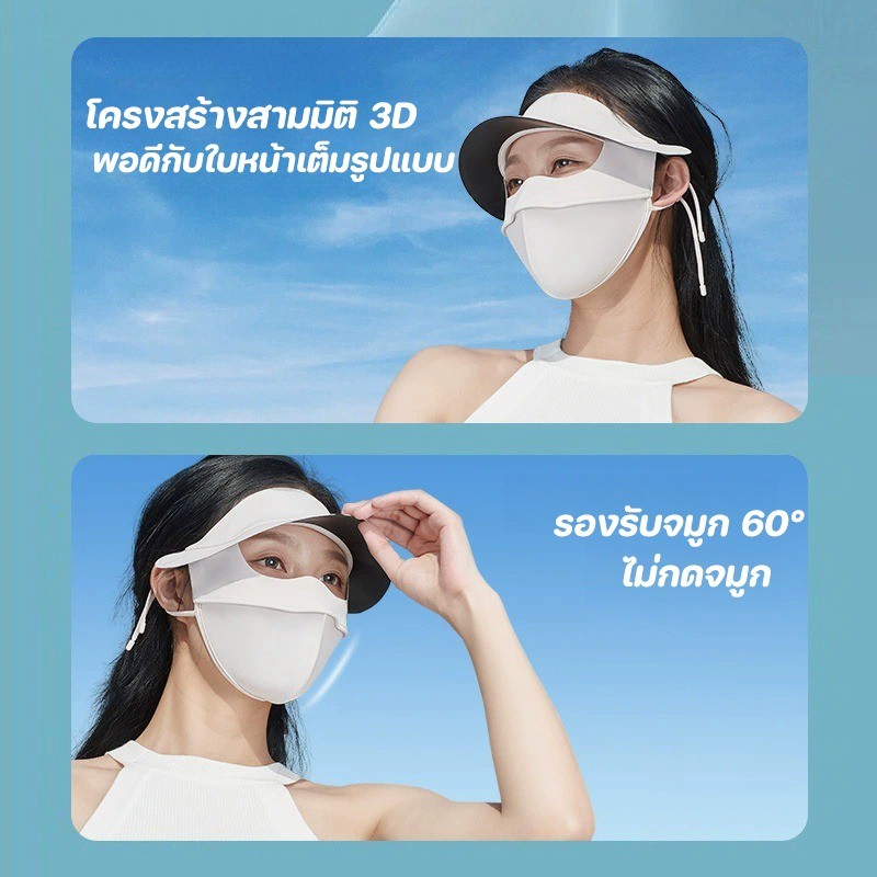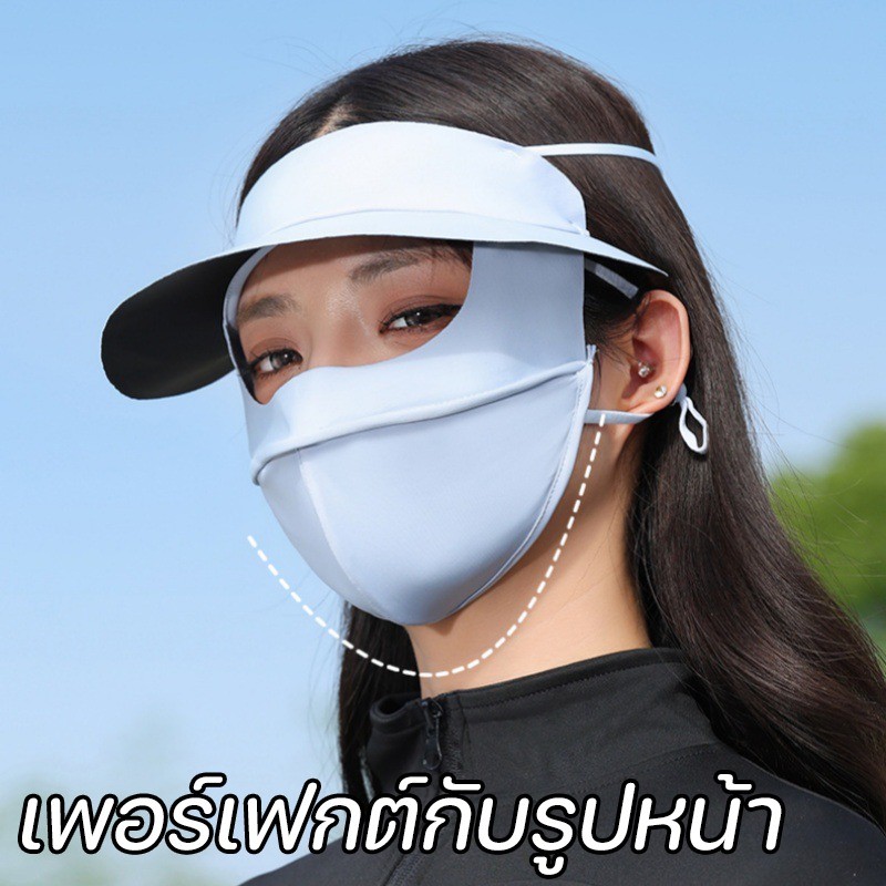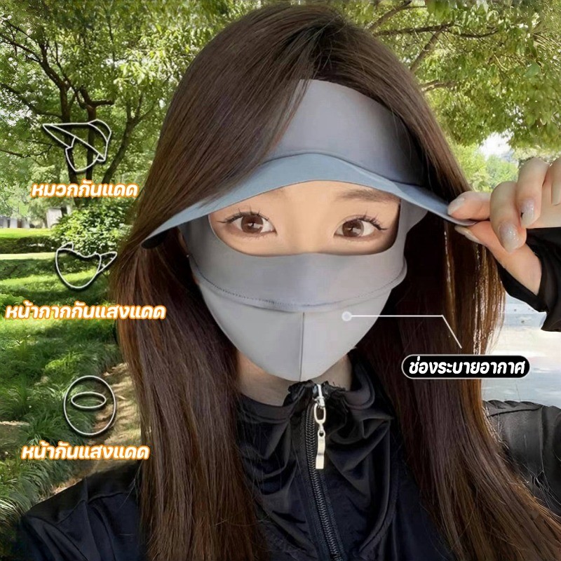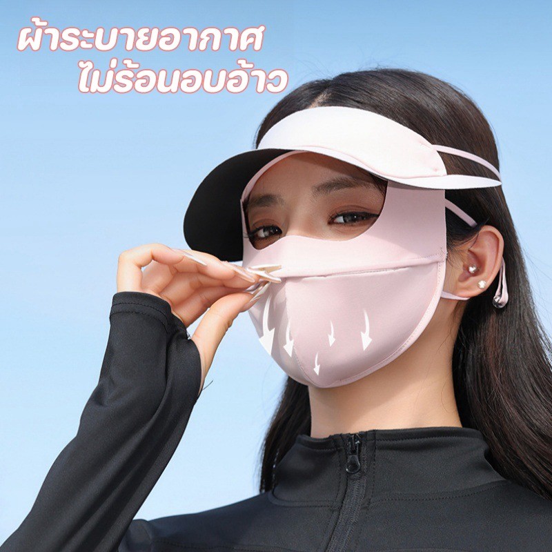 หน้ากากกันแดด หน้ากากกันแดดกันยูวีแบบเต็มหน้า ผ้าไหมน้ำแข็ง หน้ากาก + ปีก ไม่แสบหน้า หลีกเลี่ยง UV