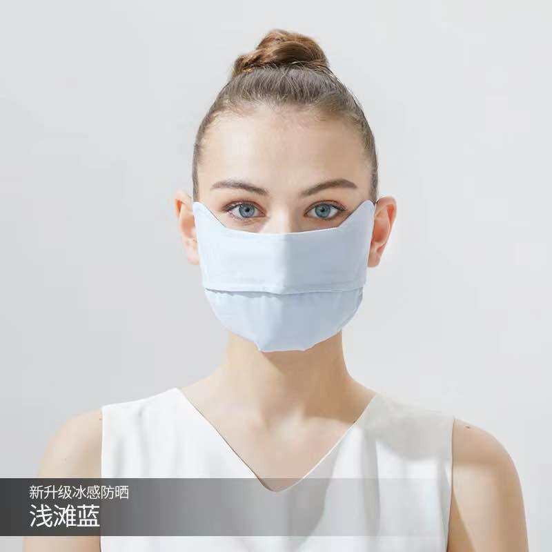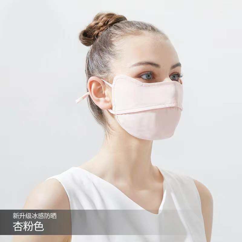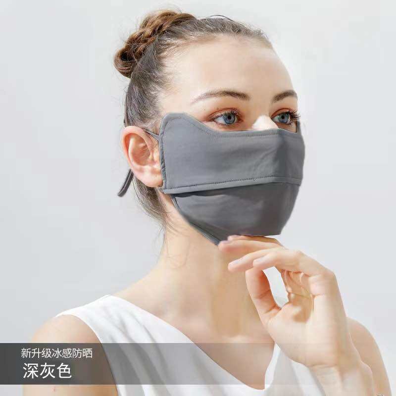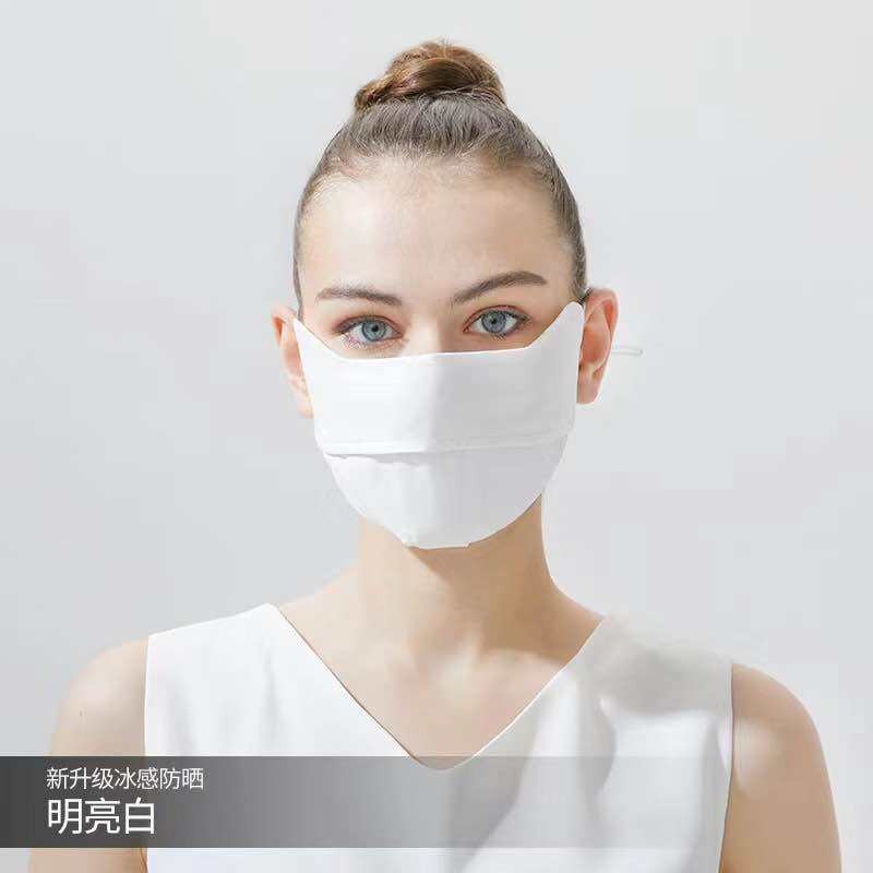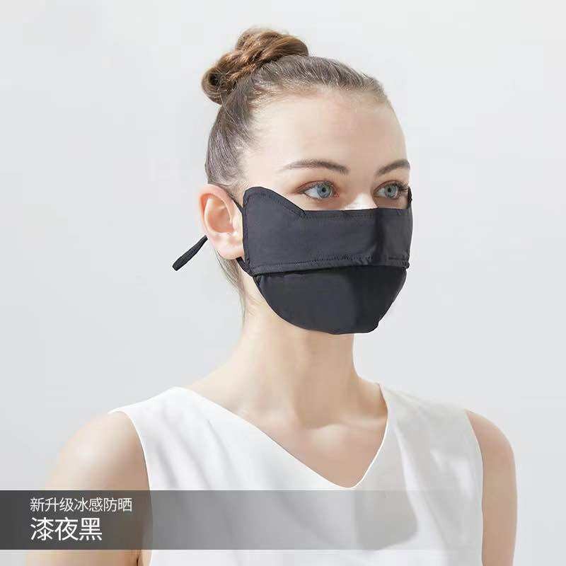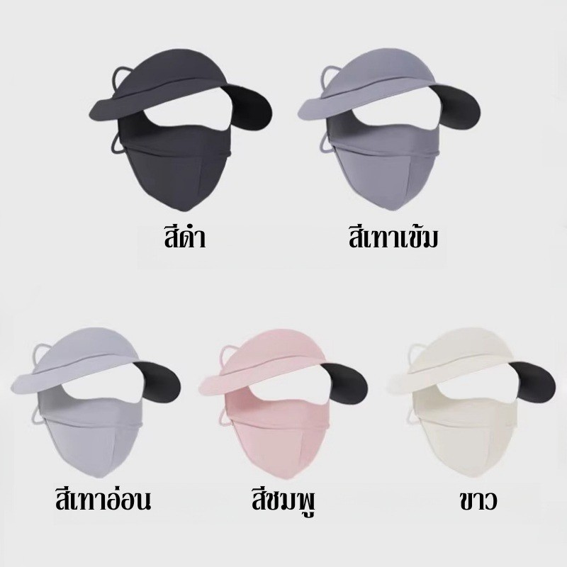 หน้ากากกันแดด หน้ากากกันแดดกันยูวีแบบเต็มหน้า ผ้าไหมน้ำแข็ง หน้ากาก + ปีก ไม่แสบหน้า หลีกเลี่ยง UV