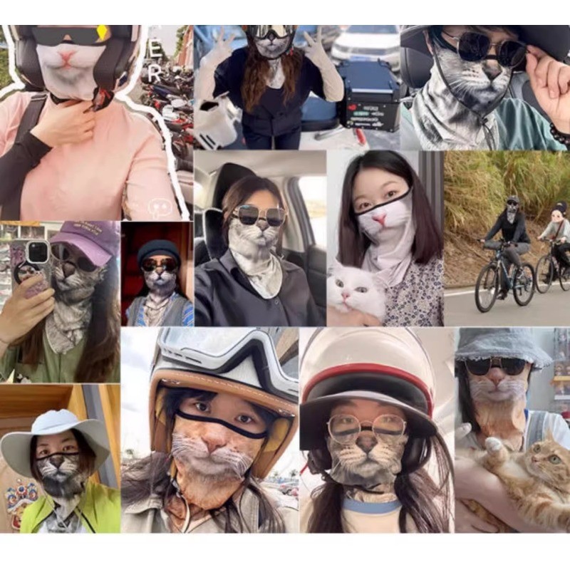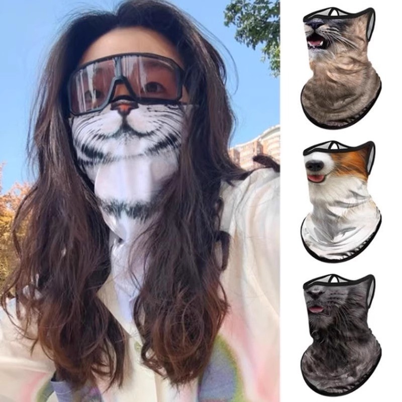หน้ากากกันแดดรูปสัตว์ ฤดูร้อนขี่ กันลม ไรเดอร์แขวนหู ครึ่งหน้าแมวสุนัขหน้ากากตลกผ้าพันคอ