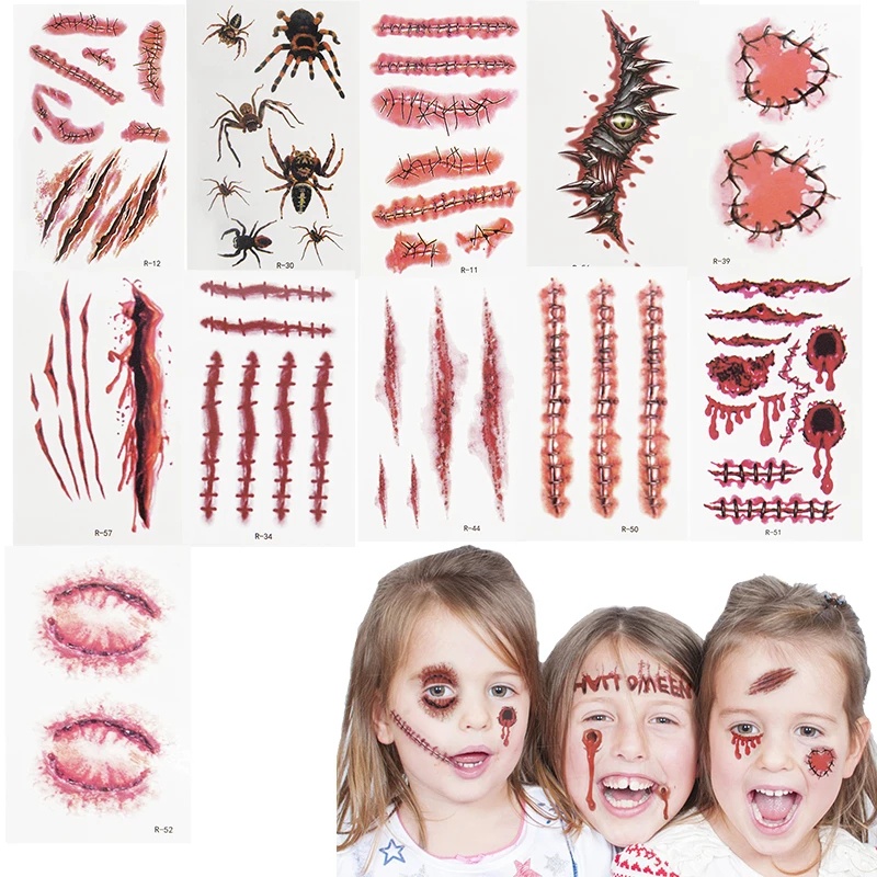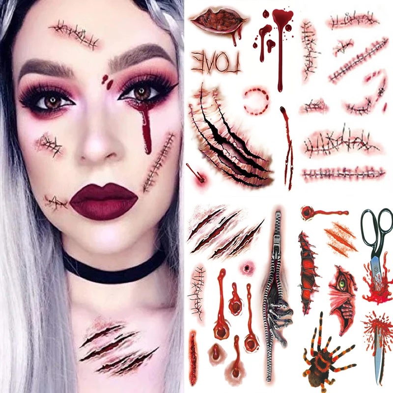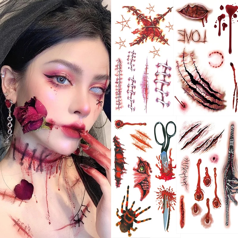 [Serendipity] สติกเกอร์รอยสัก ลายฮาโลวีน สยองขวัญ บาดแผลเลือด / ฮาโลวีนจําลอง DIY รอยแผลเป็น สติกเกอร์รอยสัก กันน้ํา