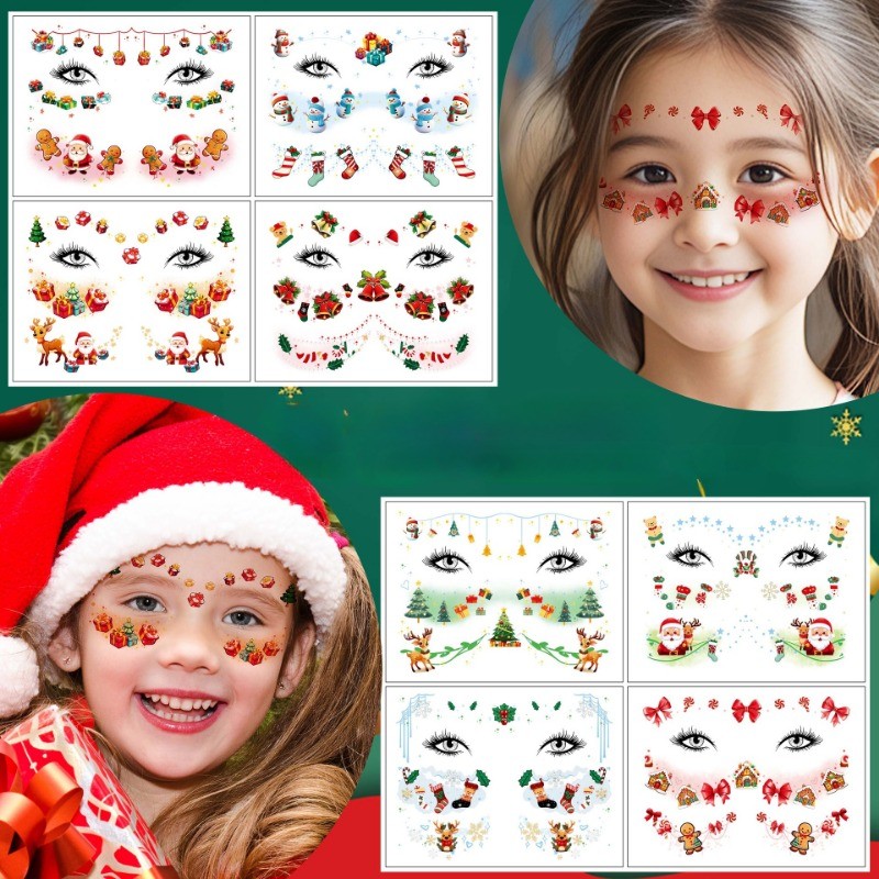 [ ที่โดดเด่น ] สติ๊กเกอร์หน้าคริสต์มาส – แพทช์เล็บชั่วคราว – Body False Tattoo – Santa Claus Elk Paster – ตกแต่งศิลปะ DIY – การ์ตูน น่ารัก กันน้ํา – สติ๊กเกอร์ต้นคริสต์มาส