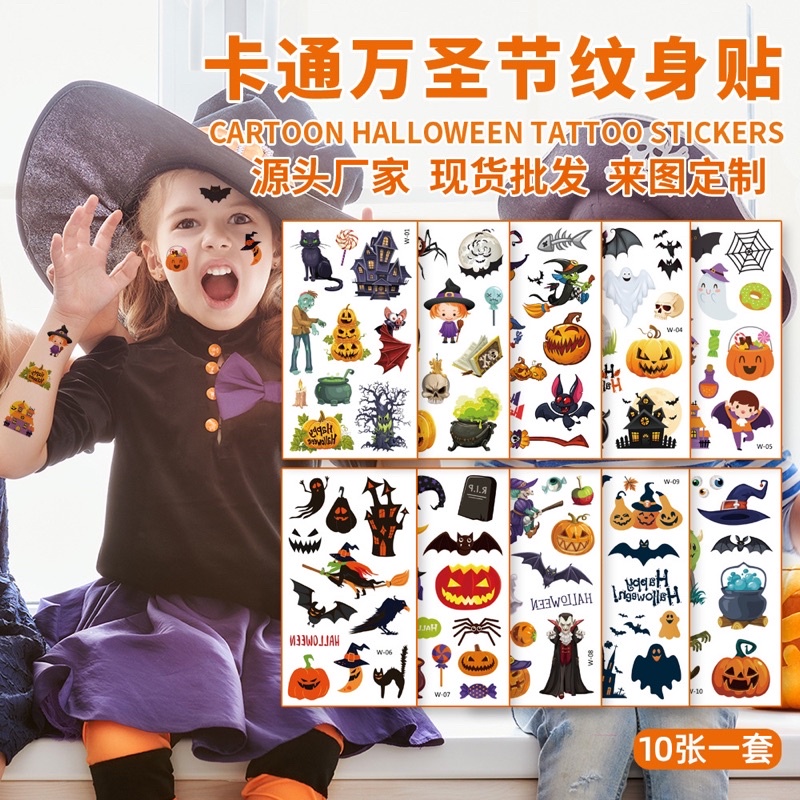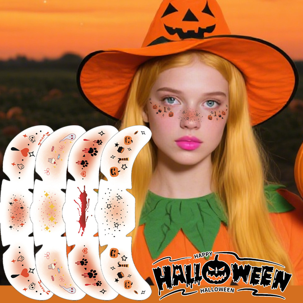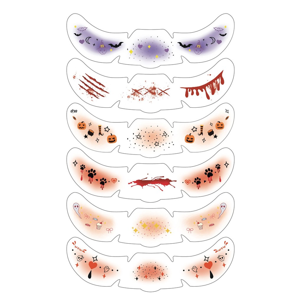 💦อัพเกรดไ💦สติ๊กเกอร์แต่งหน้าฮาโลวีน แต่งหน้าผีน่ารัก สติ๊กเกอร์แต่งหน้า กันน้ำ แต่งหน้า วันฮาโลวีน ป้องกันเหงื่อ