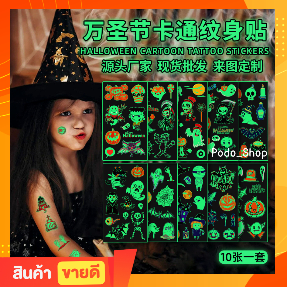 🔥พร้อมส่ง🔥 Tattoo สติ๊กเกอร์แทททู ฮาโลวีน 1แผ่น=7บาท**คละลาย** (ขนาด7×12ซม.) Halloween Tattoo (podo_shop)