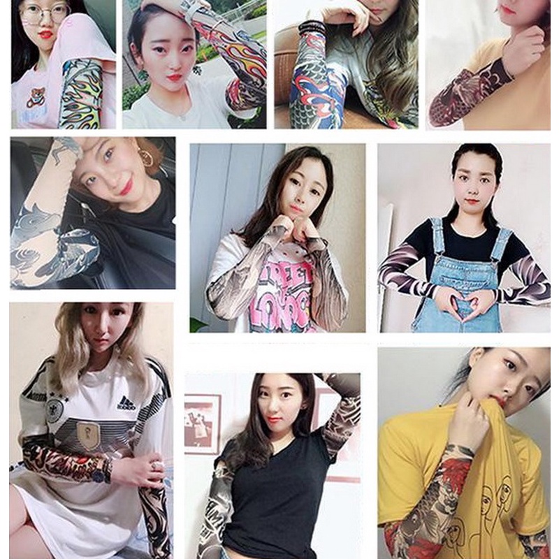 8ชิ้น ปลอกแขนกันแดด UV ลายสัก3มิติสุดเท่ห์ เหมาะกับผู้หญิง 8 Pcs. UV Protection Tatto Arm Sleeves No. 2940