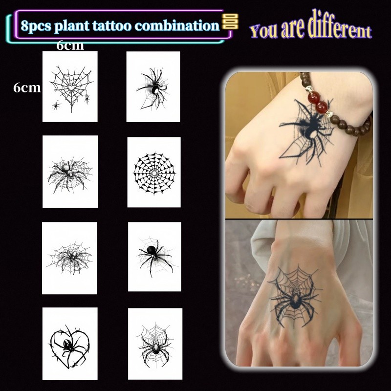 8ชิ้นแมงมุมสีดําลายสักน่ารักสาวข้อมือพืชสักสติกเกอร์รอยสักกันน้ํายาวนาน15วันสติกเกอร์ผิวชั่วคราวสักปลอม