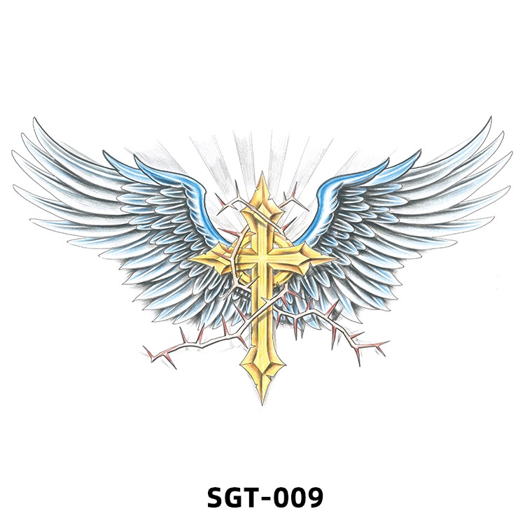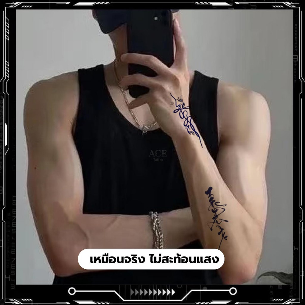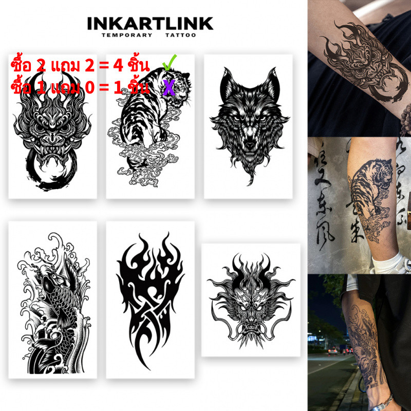 6 ชิ้น/ชุด ภาพใหญ่ใหม่ สติกเกอร์รอยสักชั่วคราว รอยสักมายากลกันน้ำติดทนนาน รอยสักปลอมยาวนานถึง 15 วัน รอยสักกึ่งถาวร