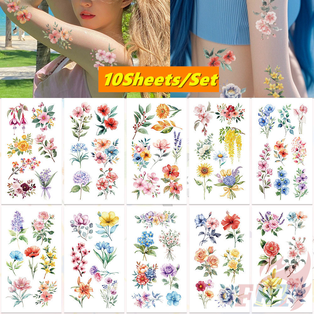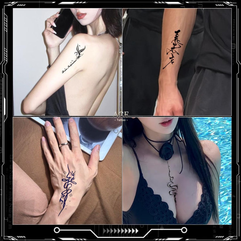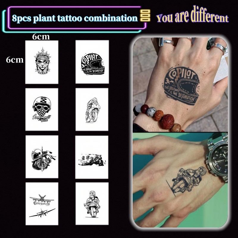 8ชิ้น รถจักรยานยนต์สีดํารวมกันรูปแบบสักสาวเซ็กซี่แขนพืชสักสติกเกอร์รอยสักกันน้ํายาวนาน15วันสติกเกอร์ผิวชั่วคราวสักปลอม