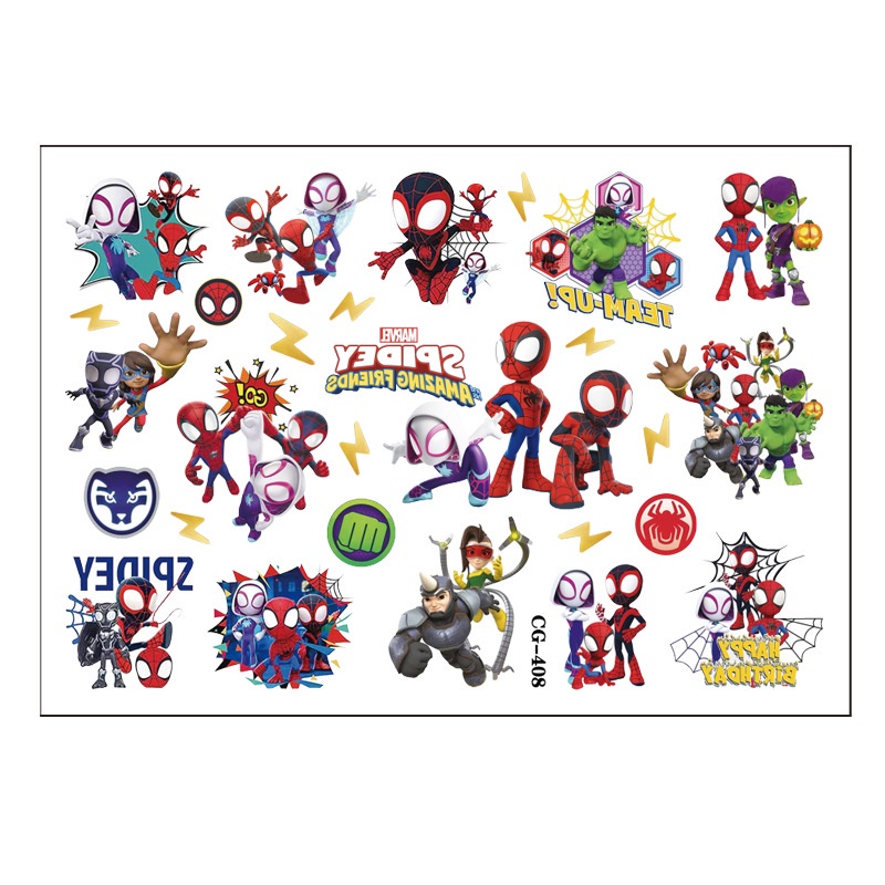 1pcs Marvel Spider Man และเพื่อนที่ยอดเยี่ยม Tattoo 10.5×15.5 ซม.วันเกิดเด็ก Party ของขวัญสติกเกอร์