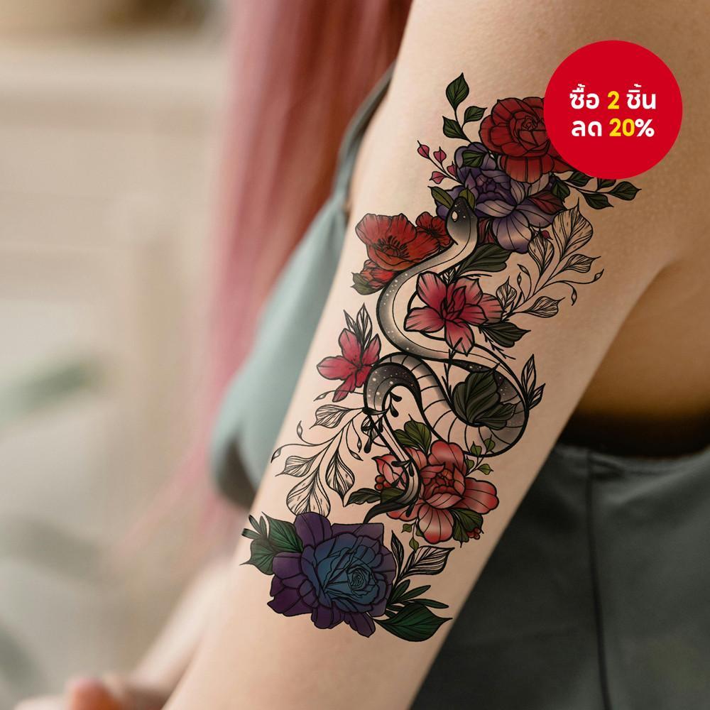 1 แผ่นสติ๊กเกอร์รอยสักงูสีสันสดใสกันน้ําและทนทานรอยสักแขนชั่วคราวสําหรับงานปาร์ตี้