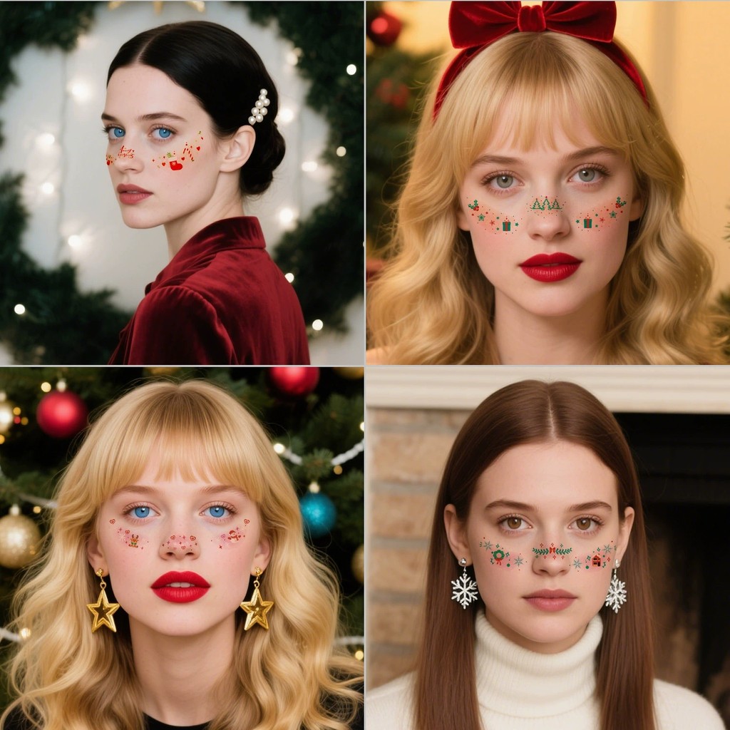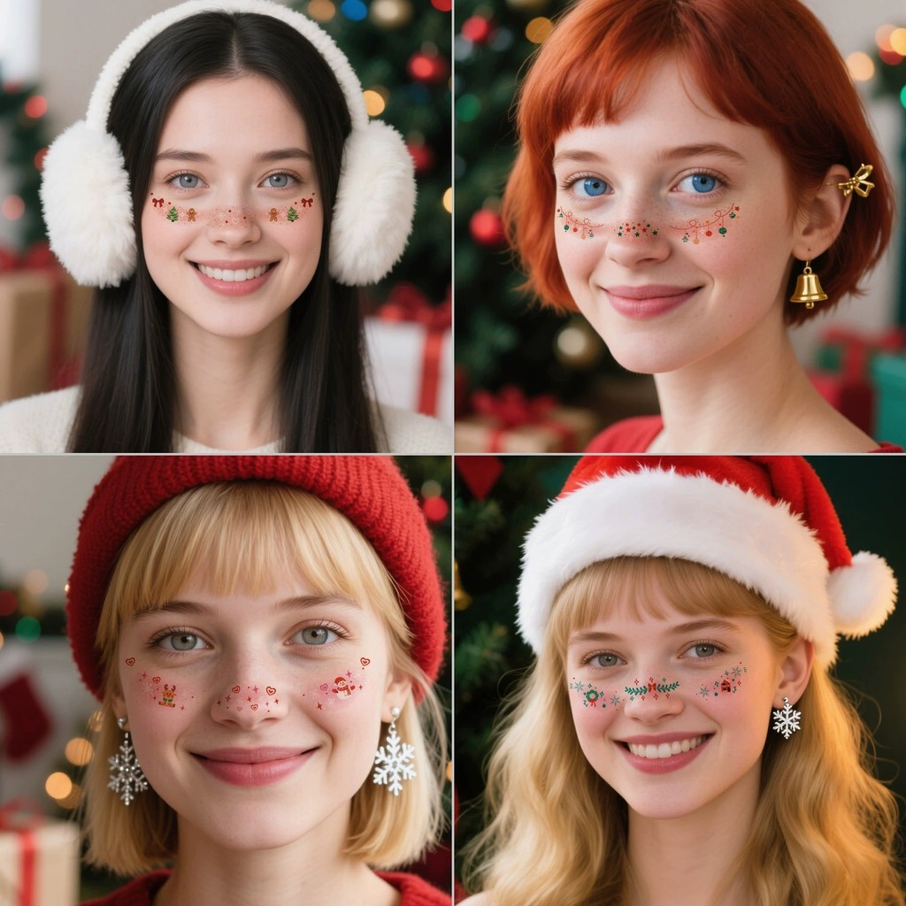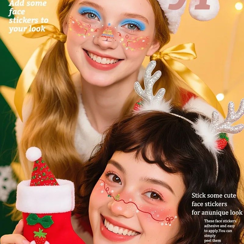 6PCS Christmas Make Up Face สติกเกอร์มุมสติกเกอร์รอยสักชั่วคราว Body Art Party Decal ชุดคิท