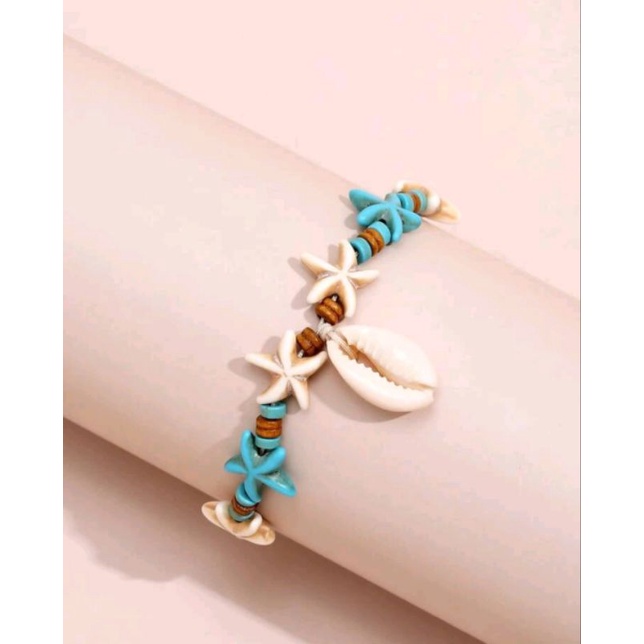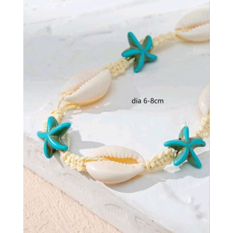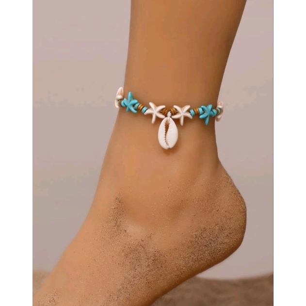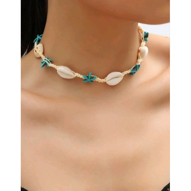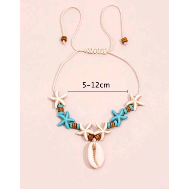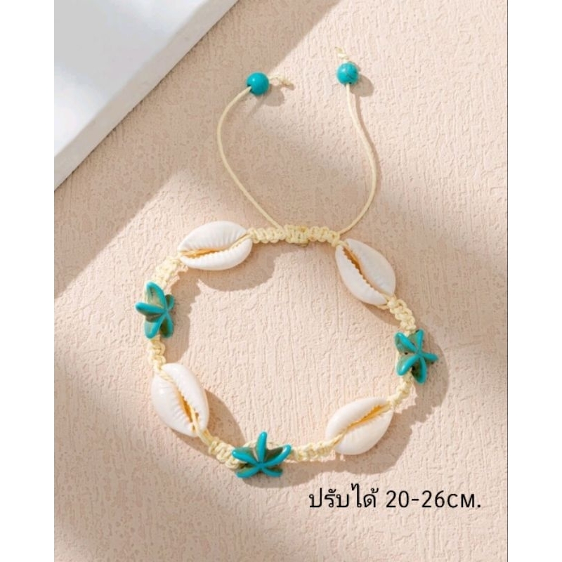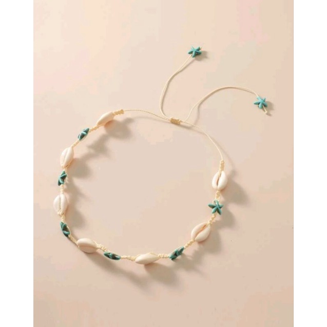 *พร้อมส่ง* Boho chic สร้อยคอเปลือกหอย,สร้อยข้อเท้าเปลือกหอย ลูกปัดดาวสีฟ้าสไตล์โบฮีเมียน