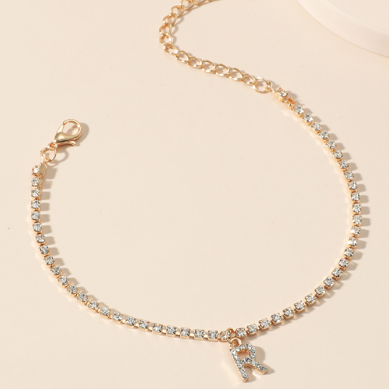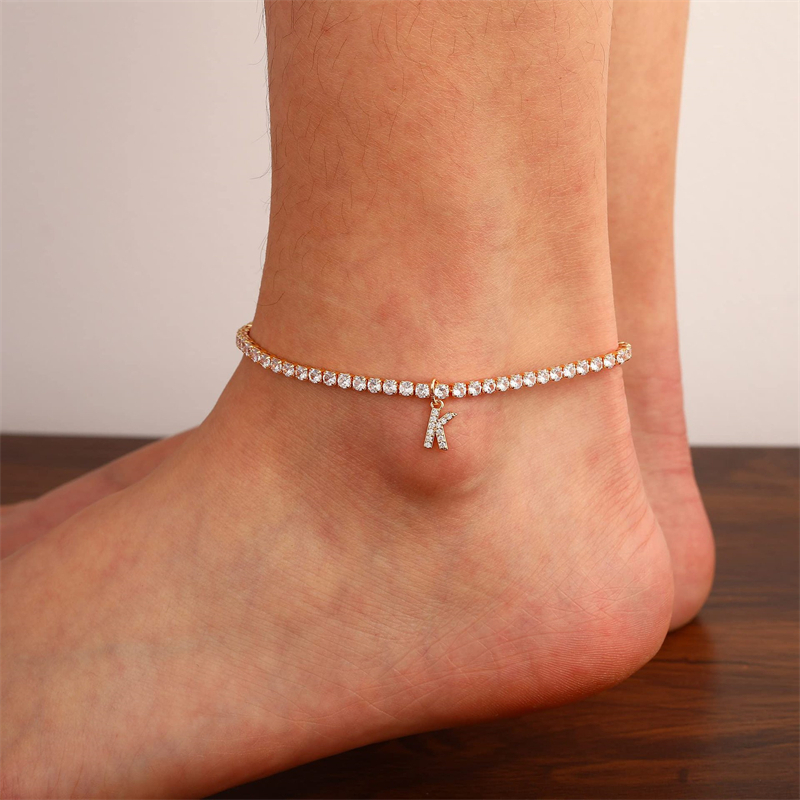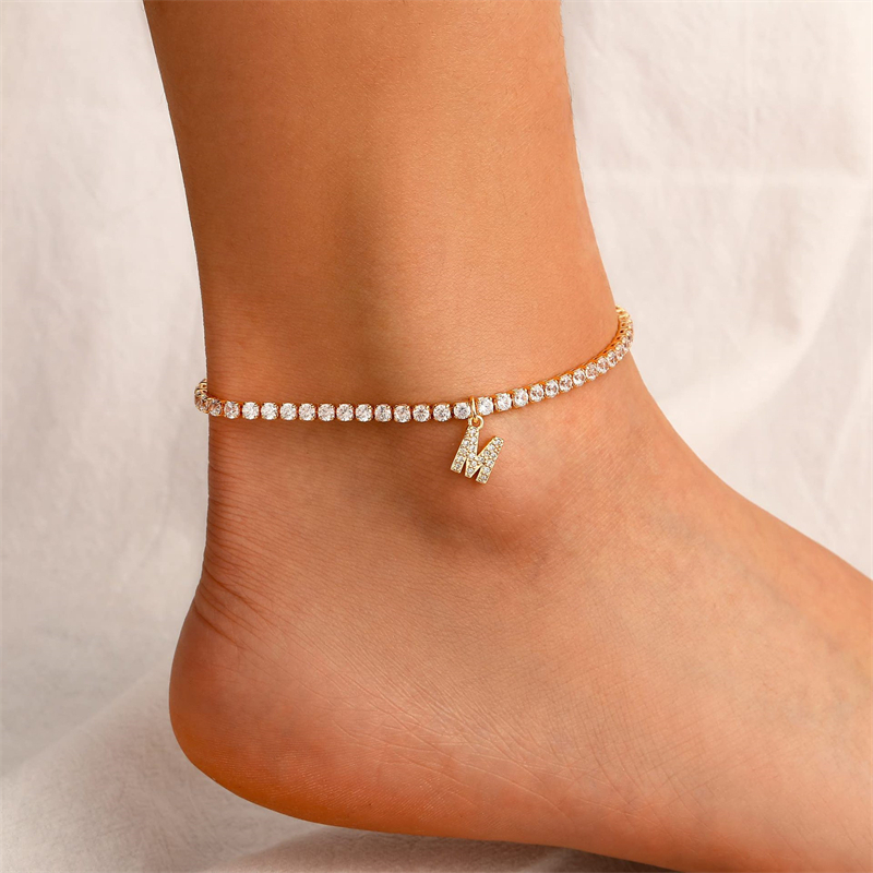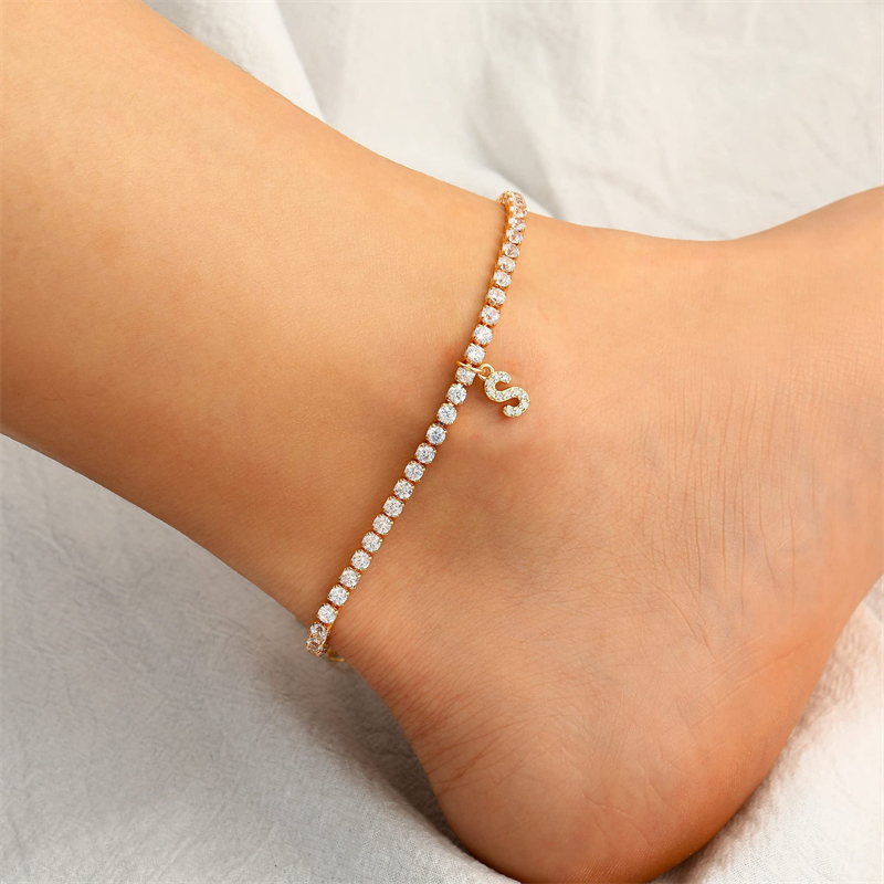 【Y&X】สร้อยข้อเท้าโซ่ทอง ประดับเพทาย 26 ตัวอักษร A-Z สําหรับผู้หญิง