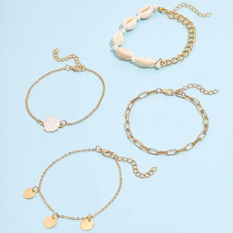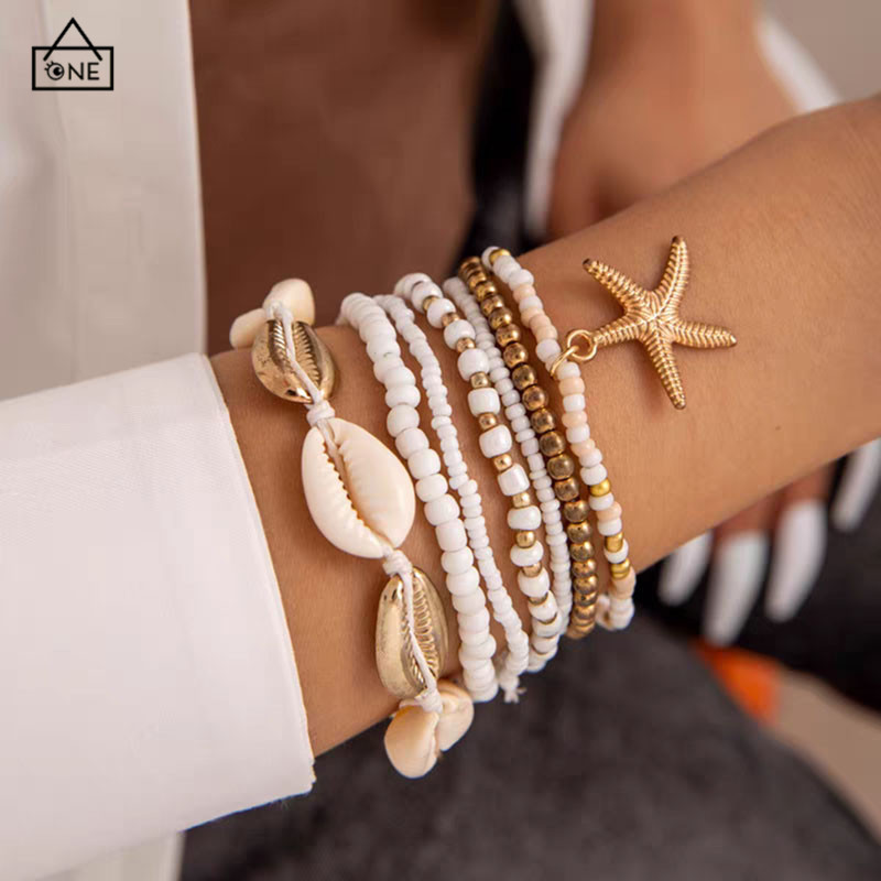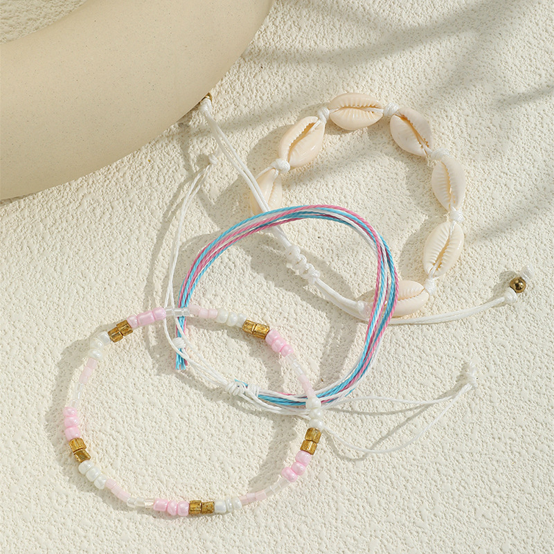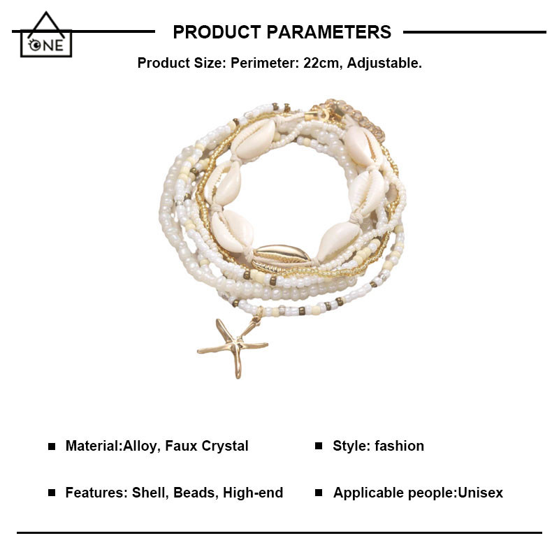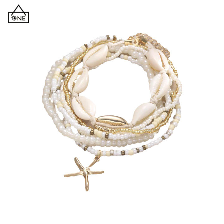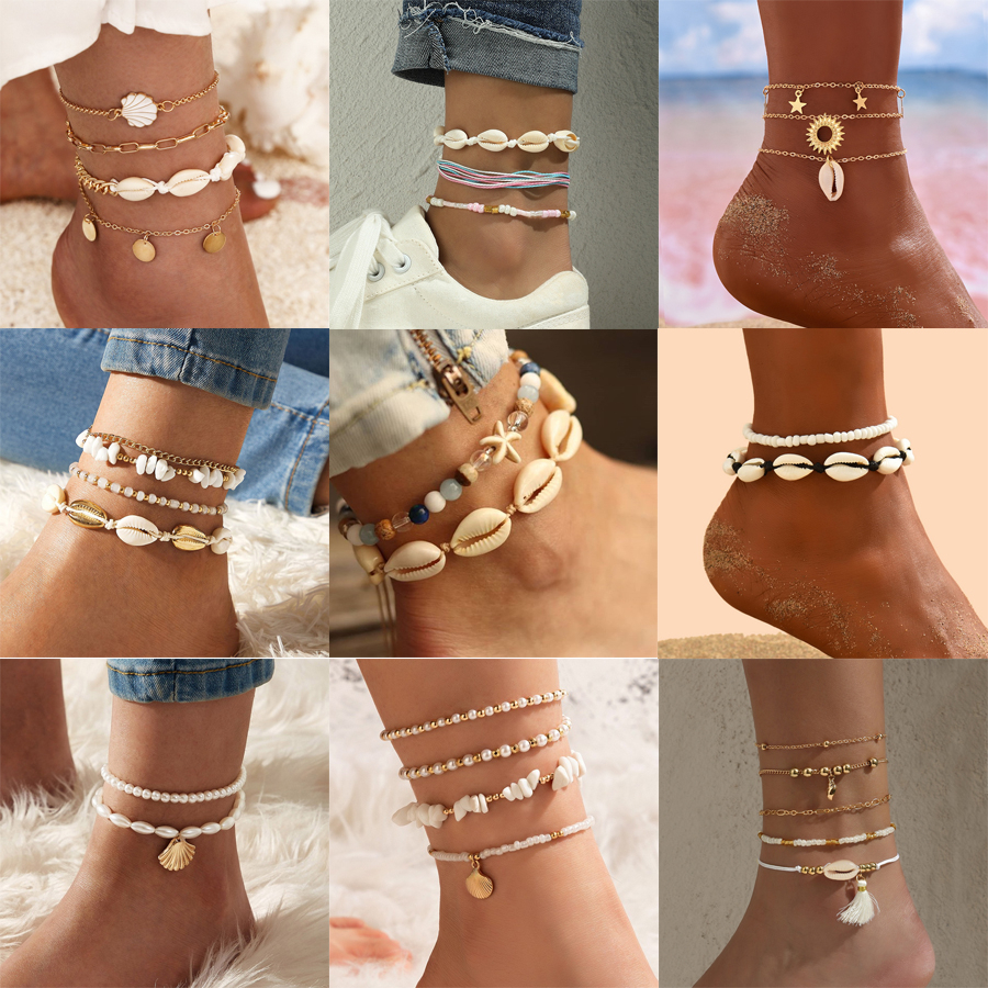 COD❤️ชุดสร้อยข้อเท้าเปลือกหอยชายหาด 7 ชิ้น ลูกปัดข้าวแบบทันสมัย สไตล์เรียบง่าย-a.one