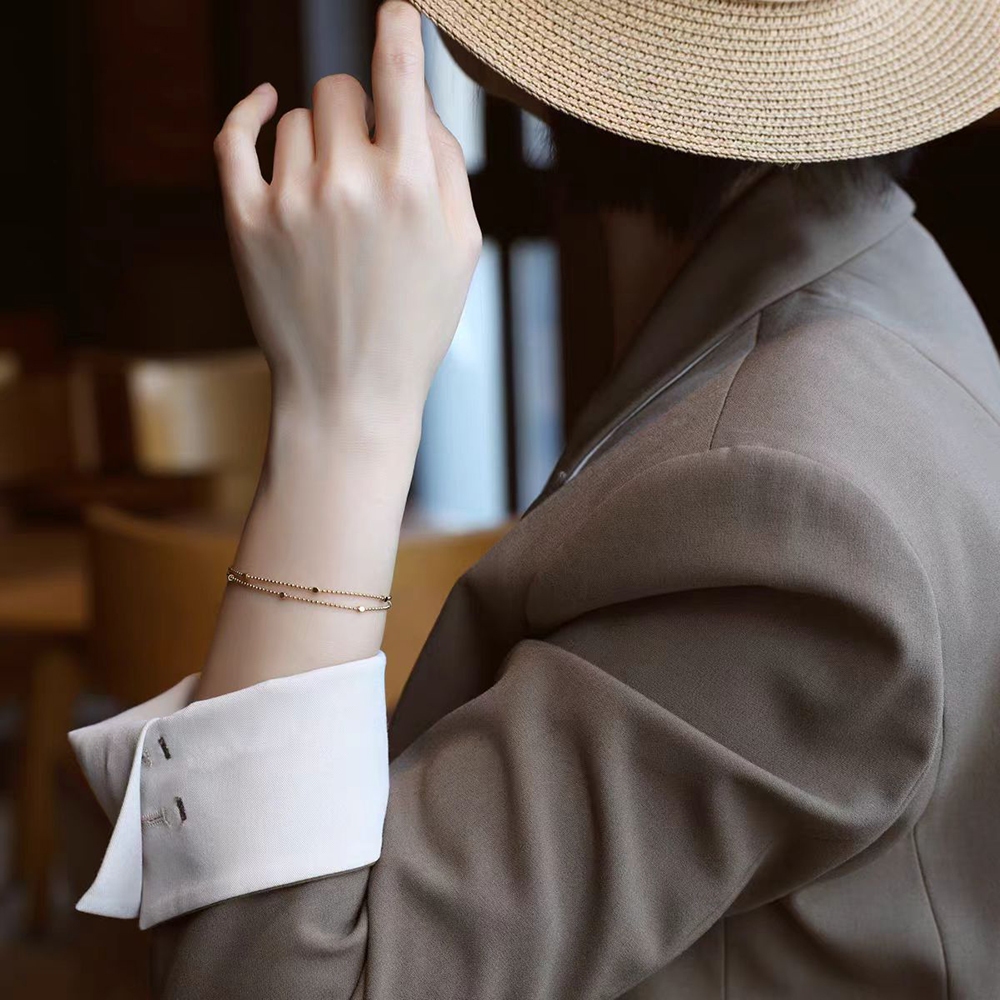 สร้อยข้อมือสแตนเลสลูกปัดสี่เหลี่ยม SHINY กันน้ํากันเหงื่อ ดีไซน์เรียบง่าย สำหรับผู้หญิง