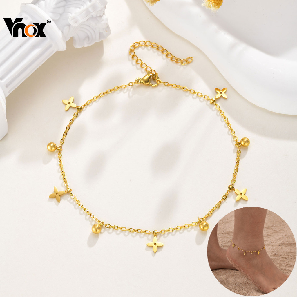 Vnox Zircon Cubic ดอกไม้ Cross Four-Leaf Clover สร้อยข้อเท้าสําหรับผู้หญิง,ทองสแตนเลส Lucky Dainty สวดมนต์คริสเตียนสร้อย