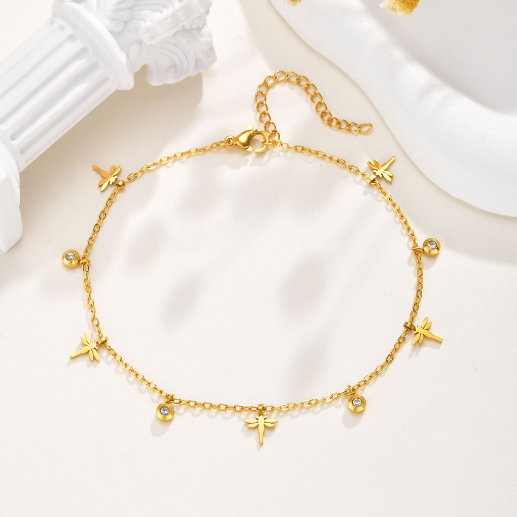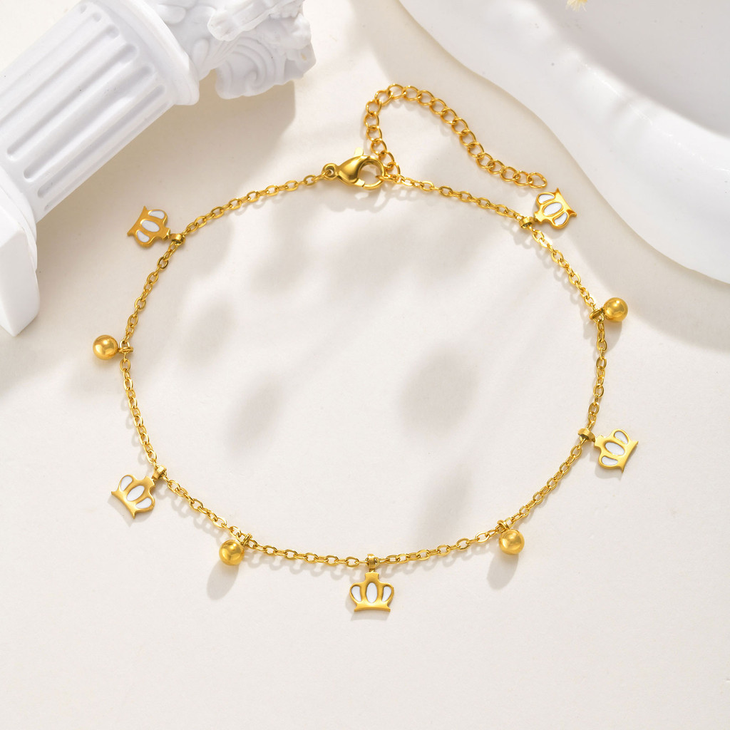 OYJR สร้อยข้อเท้าสแตนเลส ข้อเท้าหน้ายิ้ม ทองชุบ 18k สำหรับผู้หญิง