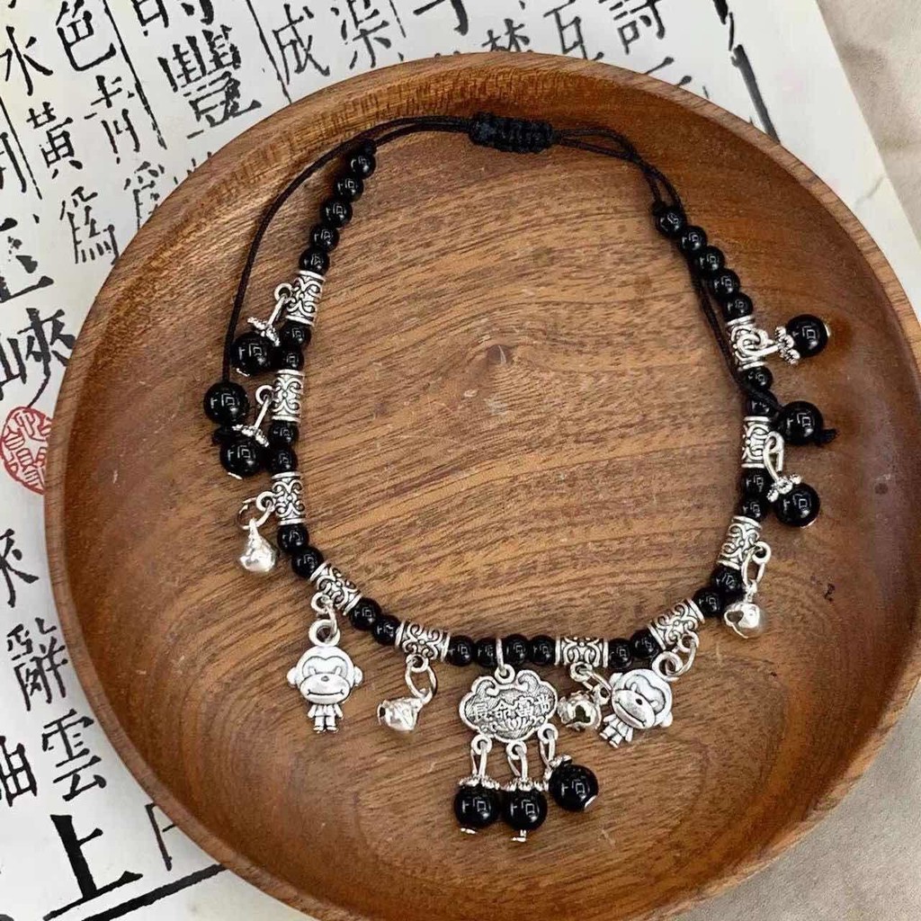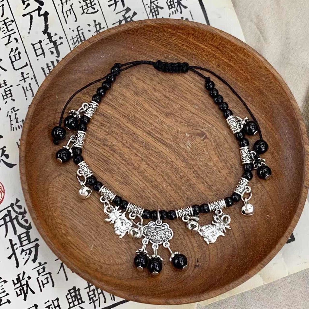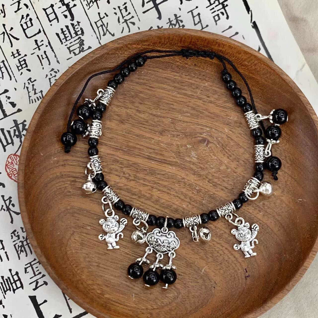 [YY] สร้อยข้อเท้า แบบเชือก สีดํา แบบเรียบง่าย แฟชั่นคู่รัก สไตล์สตรีท และญี่ปุ่น และเกาหลี สําหรับนักเรียนผู้ชาย และผู้หญิง