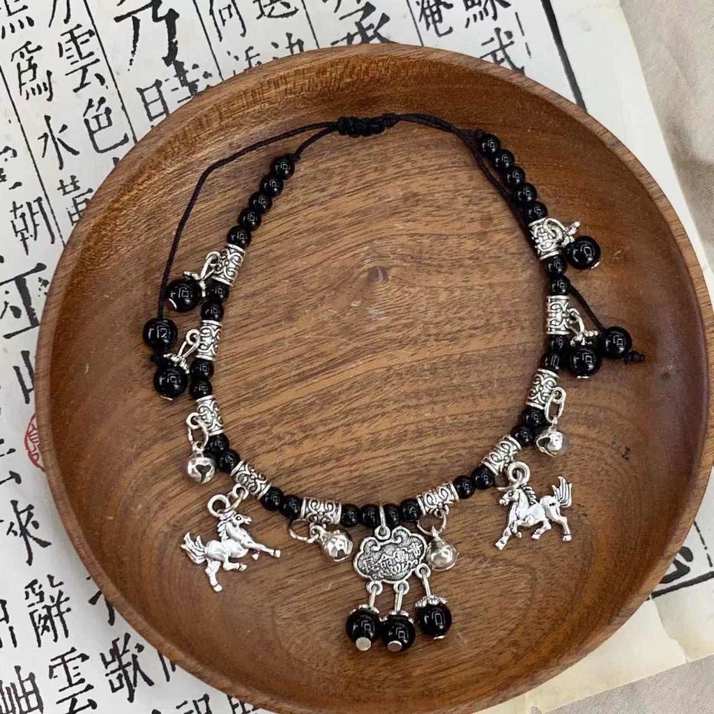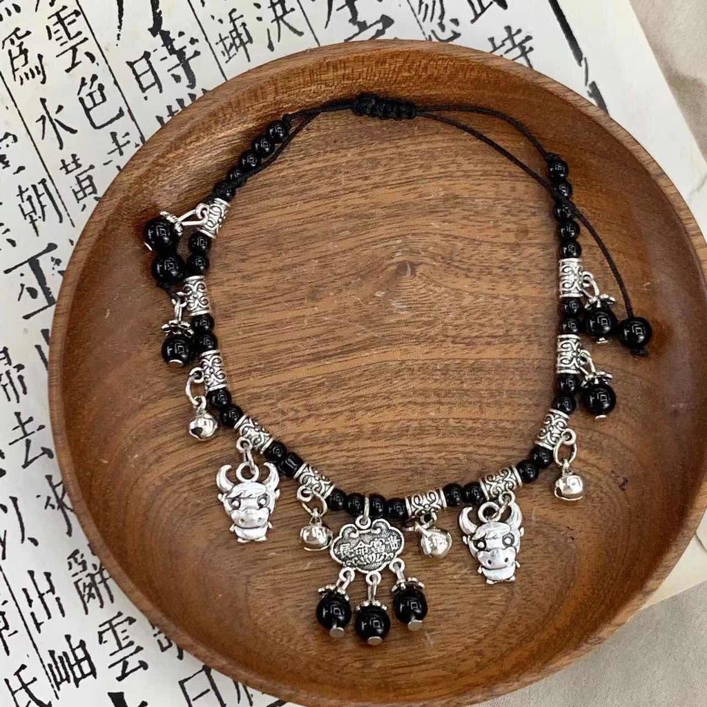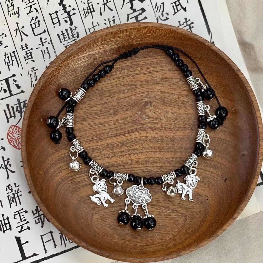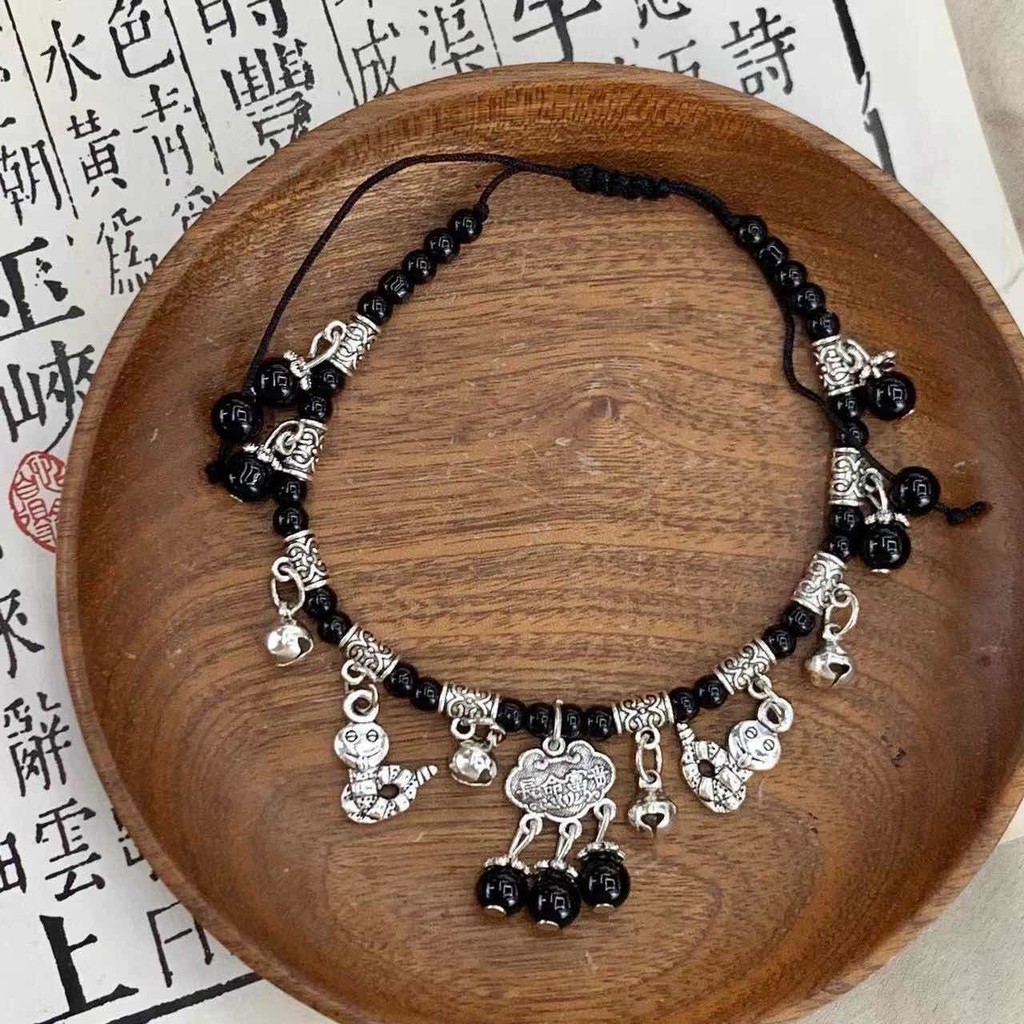 [YY] สร้อยข้อเท้า แบบเชือก สีดํา แบบเรียบง่าย แฟชั่นคู่รัก สไตล์สตรีท และญี่ปุ่น และเกาหลี สําหรับนักเรียนผู้ชาย และผู้หญิง