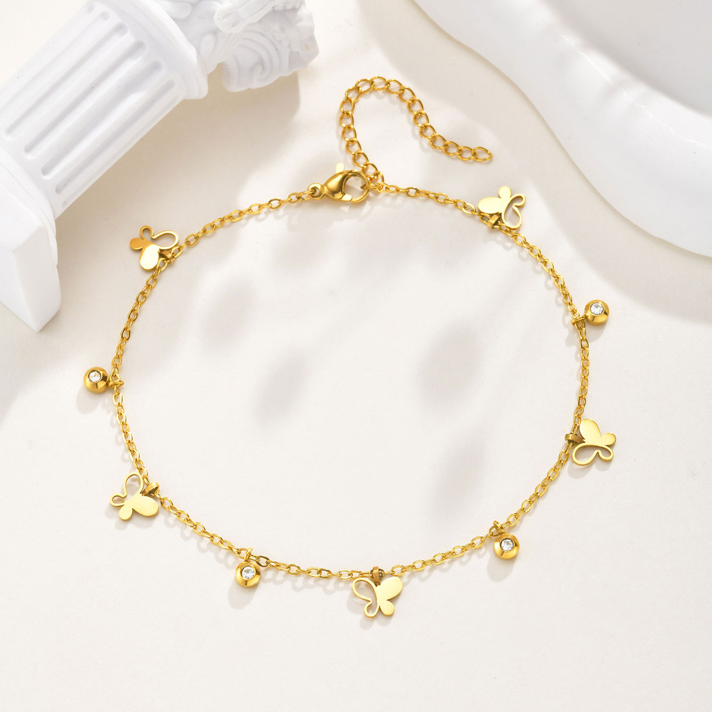 สร้อยข้อเท้าผู้หญิง ประดับมุก ทรงผีเสื้อ ปรับความยาวได้ ทันสมัยและแปลกใหม่