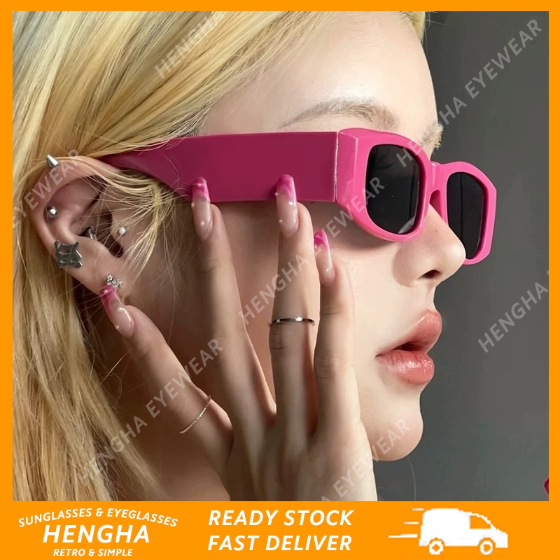 (HENGHA) แว่นตากันแดด กรอบสี่เหลี่ยม สีชมพู ลูกกวาด ฤดูร้อน สําหรับผู้หญิง